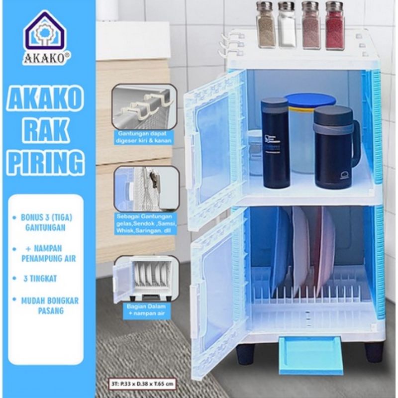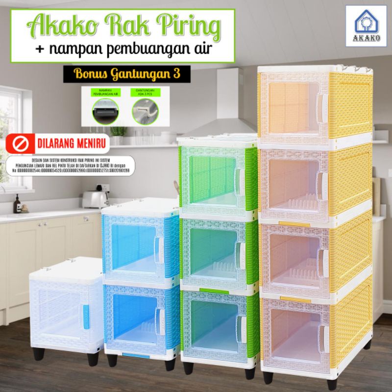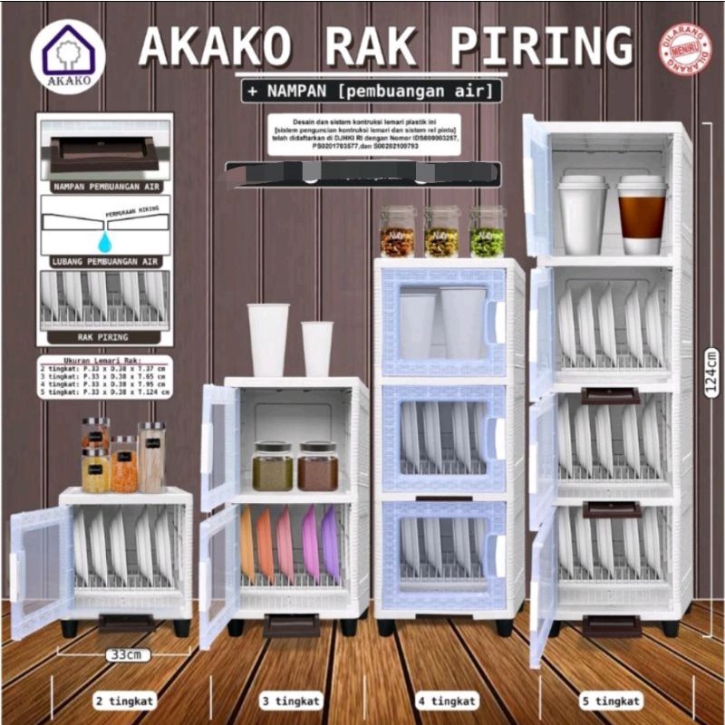 AKAKO - Lemari Akako Rak Piring & Nampan ( PEMBAN AIR ) + Kaca Transparan