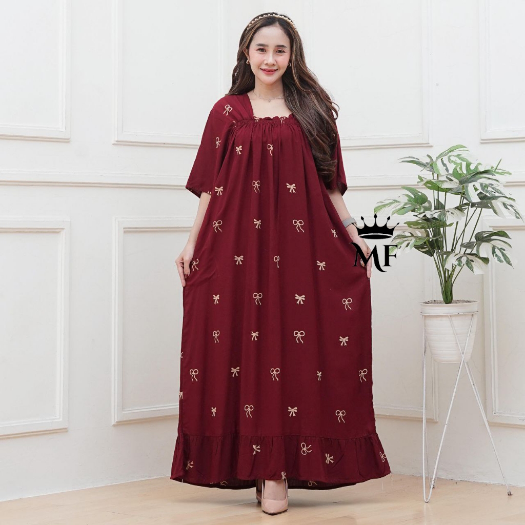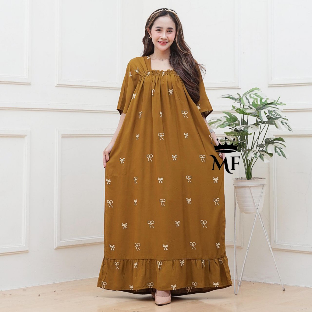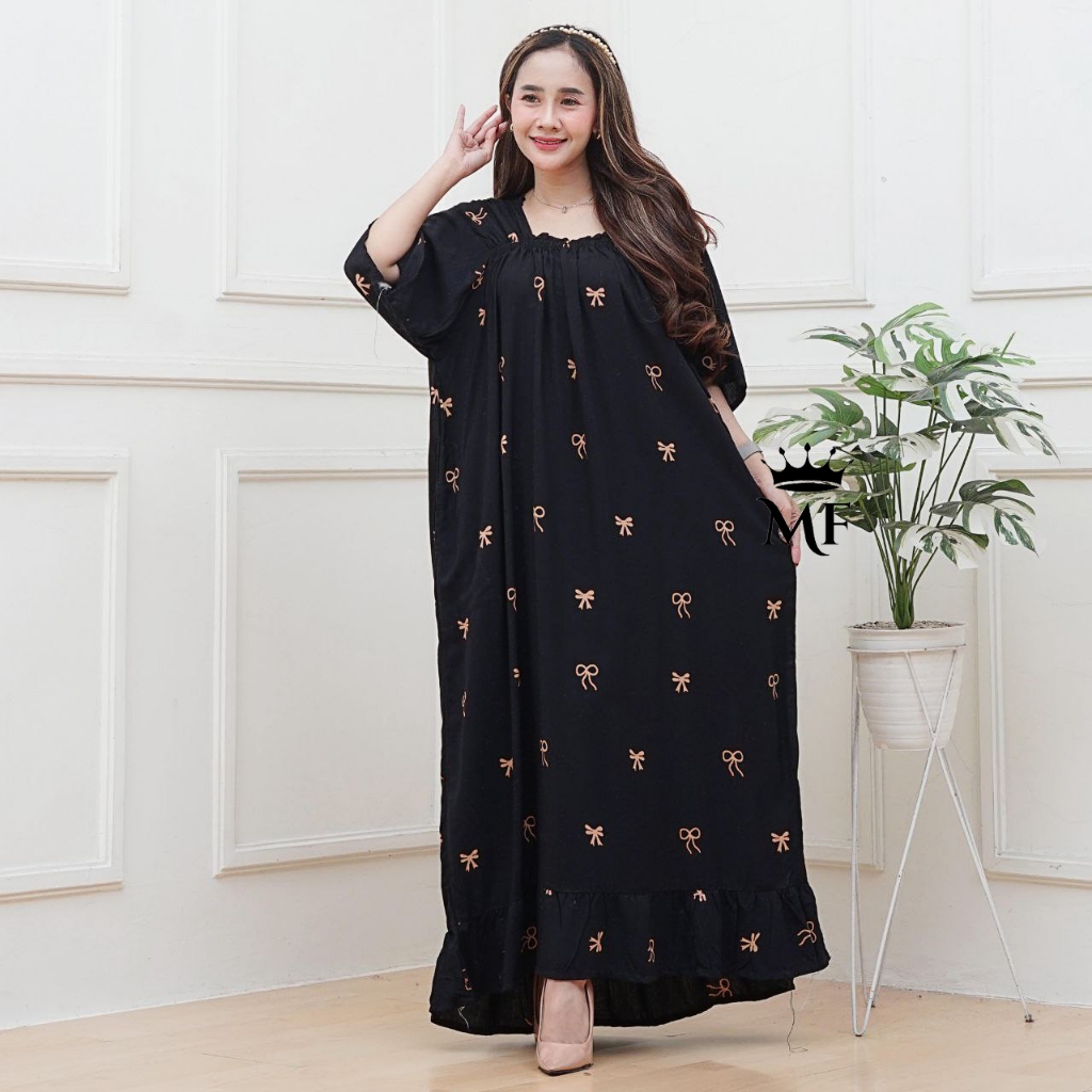 Dress Wanita Jumbo Ld 140 Model Terbaru Bahan Rayon Premium Kekinian Simpel Motif Pita
