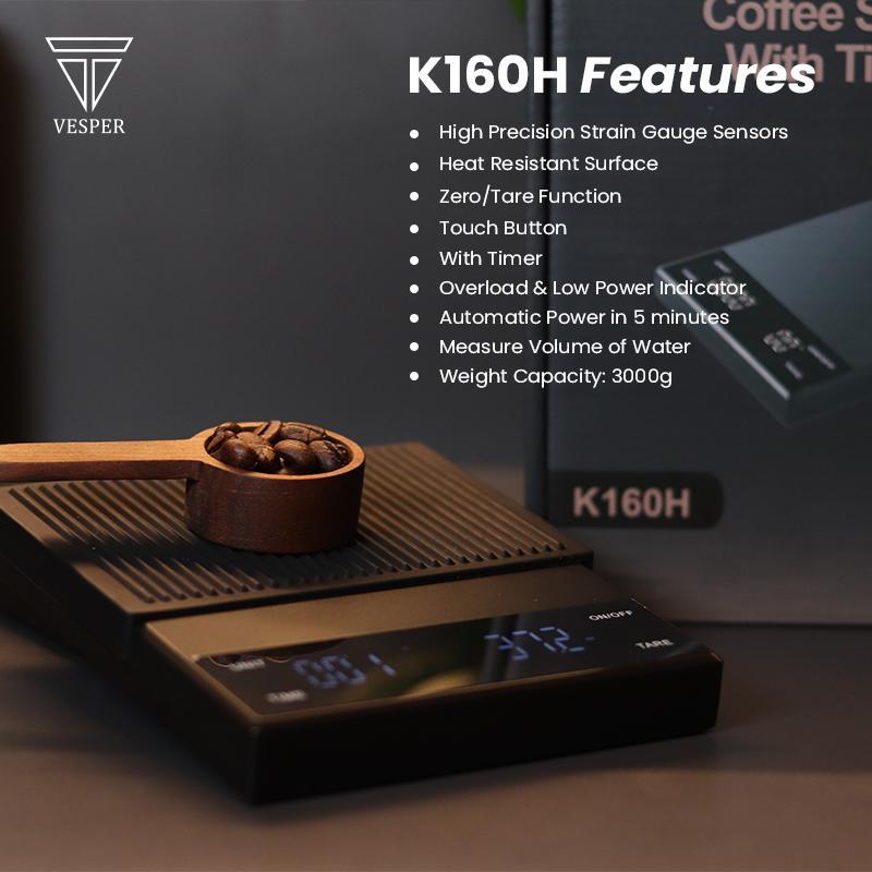 coffee scale K160H high precision sensor with timer / timbangan kopi V60 dapur digital USB 3kg multifungsi
