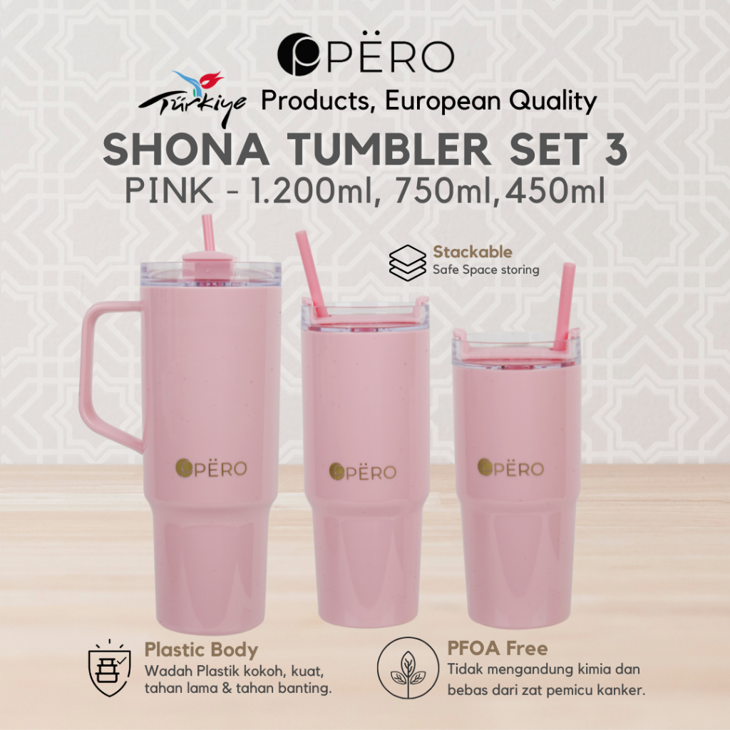 Pero Shona Tumbler Set of 3 With Handle and Straw Plastic Bottle 1200ML 750ML 450ML / Botol Minum Tumbler Plastik Set 3 dengan Gagang
