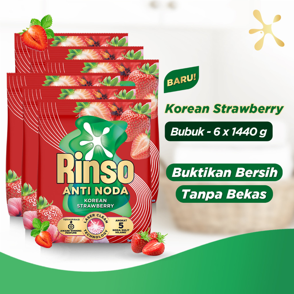 Rinso Baru Detergen Bubuk Varian Korean Strawberry 1440g x6