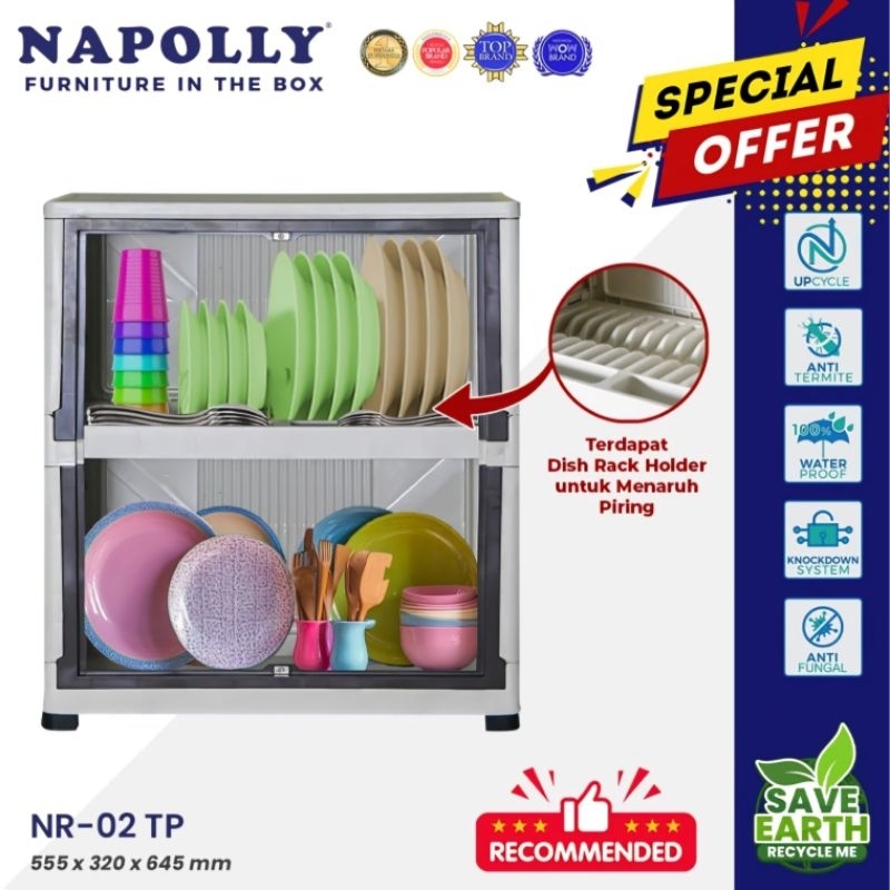 Napolly Lemari Rak Piring 2 Susun Higenis & Praktis Bisa Bongkar Pasang NR-02 TP