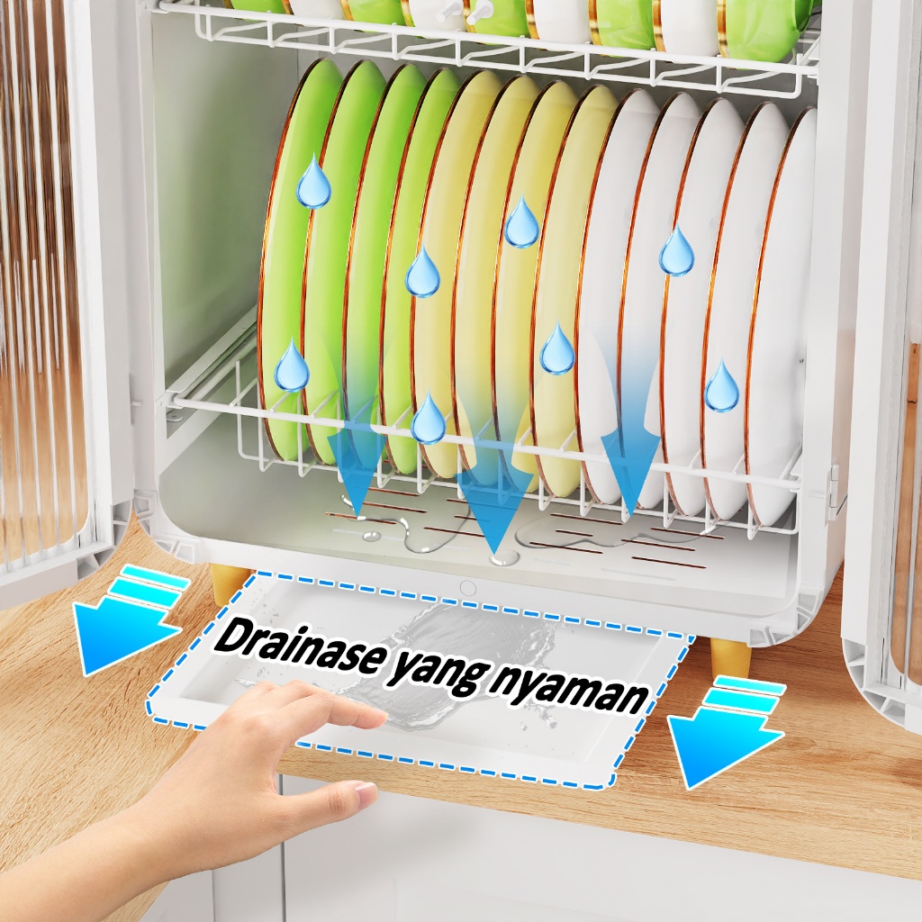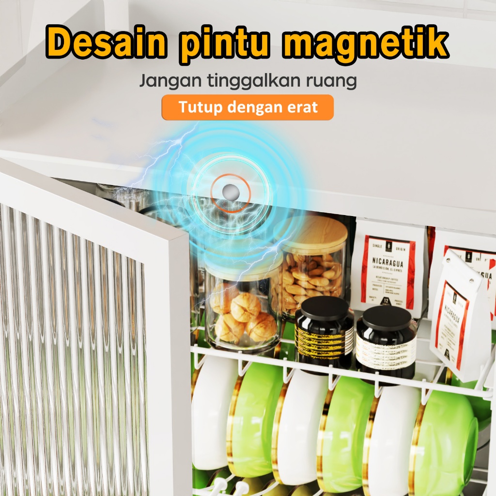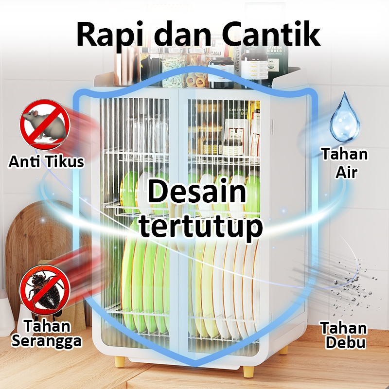 GSLIFE Rak Piring Tertutup 2/3 Tingkat Lemari Piring Serbaguna Dapur Rak Dengan Pintu