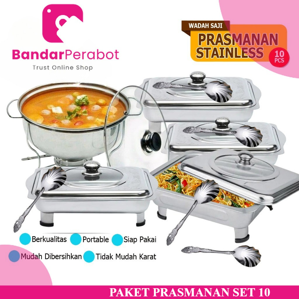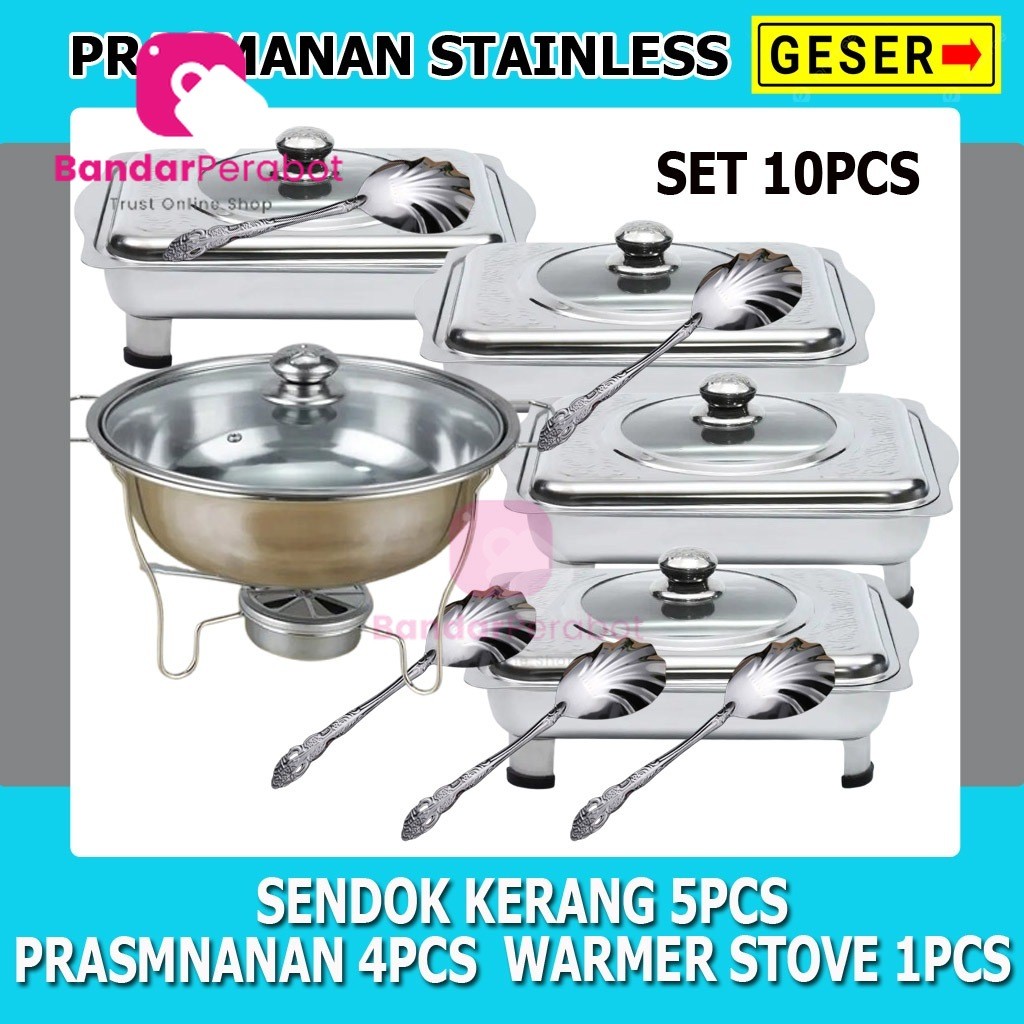 Paket Prasmanan Stainless Dan Warmer Stove Plus Sendok Paket Prasmanan Pesta Set 10pcs