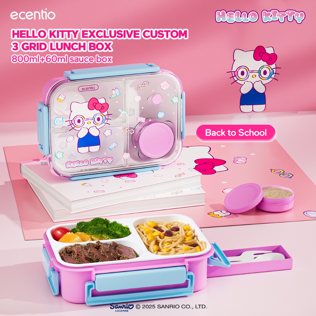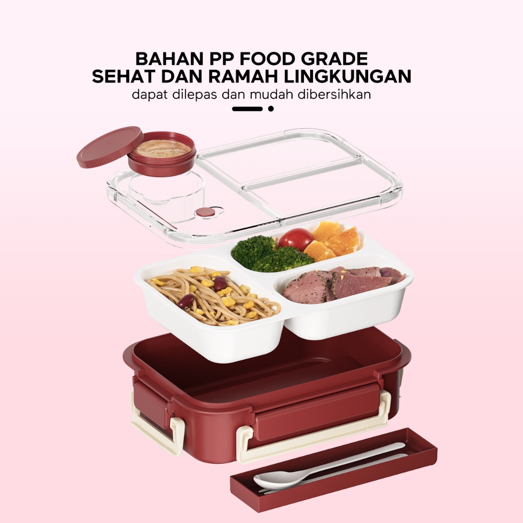 【2.0 Anti Tumpah Seri】ecentio lunch box 800ml Food Grade Plastic & Stainless Pengisian Dan Pemanasan Air 3 sekat kotak bekal anti tumpah