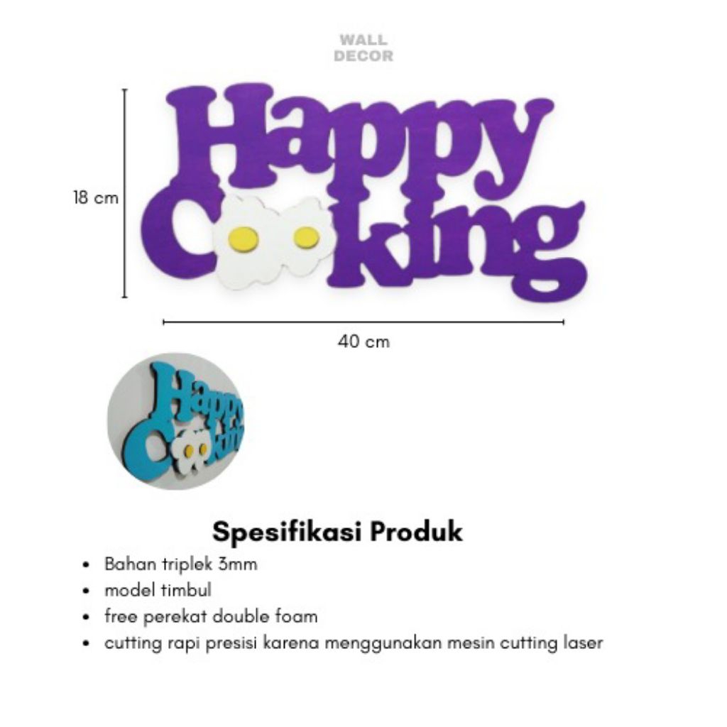 Pajangan Dinding Dapur TELUR Happy Cooking Motif Timbul Kayu Ukuran 30x13cm Laser Cutting