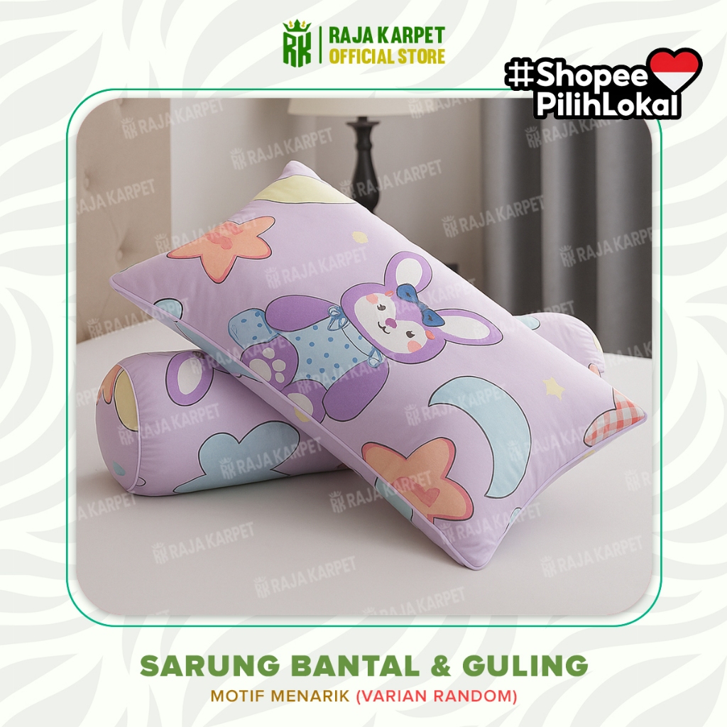 RAJA - Sarung Bantal & Sarung Guling Motif Kekinian Lucu Bahan Microtex Dikirim Random