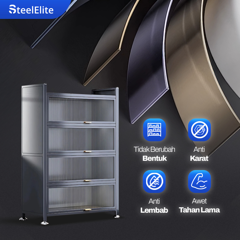 STEEL ELITE RAK PIRING TERTUTUP LEMARI DAPUR SERBAGUNA LEMARI PIRING MINIMALIS LEMARI PIRING FULL