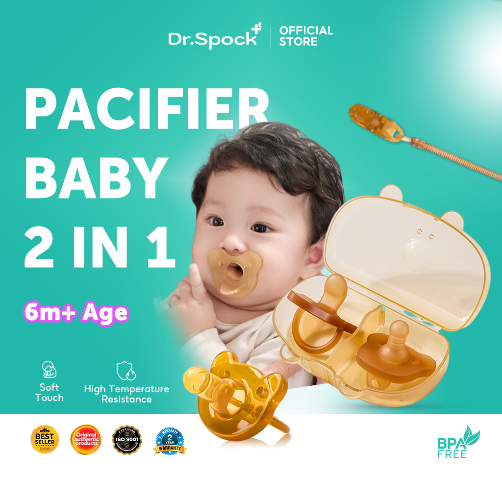 Dr.Spock Dot Bayi 0-6 Bulan | BPA Free, Silikon Aman + Rantai & Kotak SP01