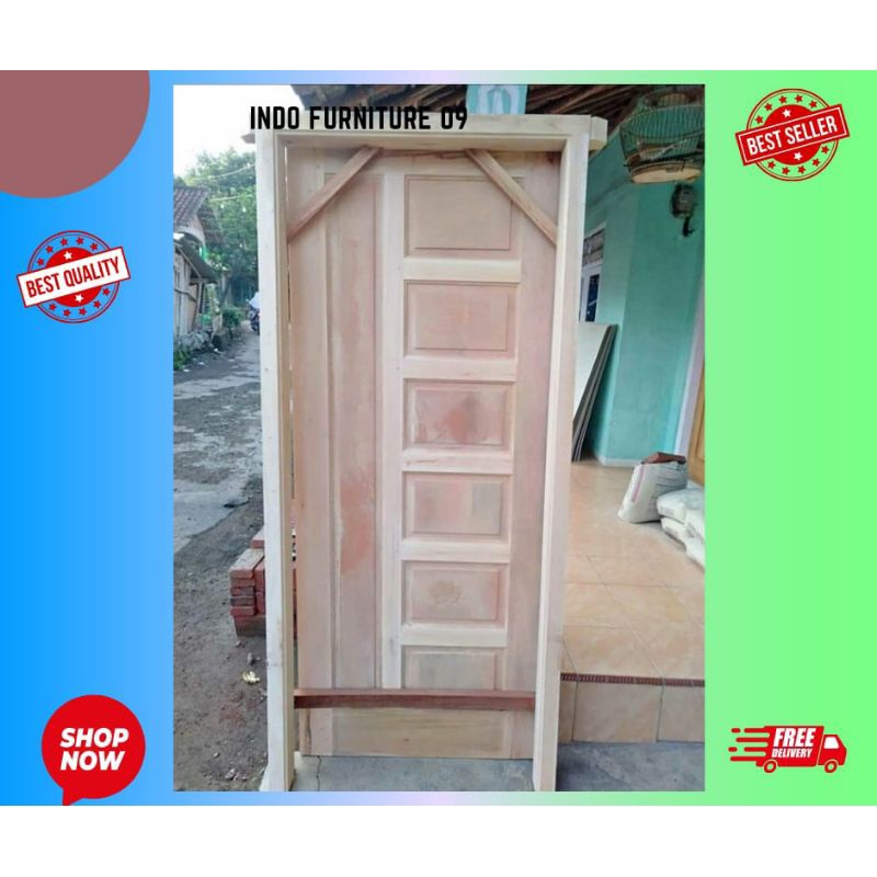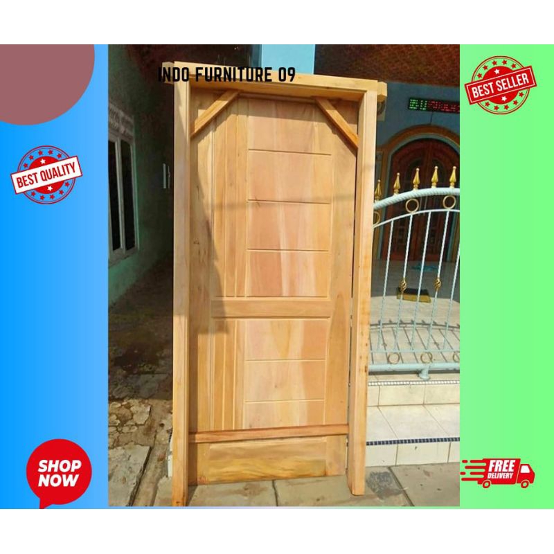Ready stock daun pintu dan kusen 1set pintu rumah kayu mahoni ukuran pintu 200x80