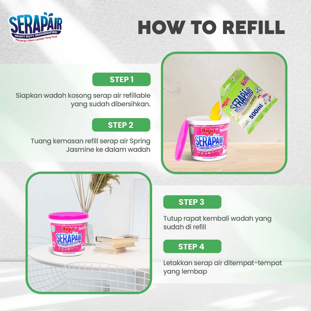 [1 Lusin] Bagus Serap Air Refill Daya Serap 450 ml - Kemasan Isi Ulang - Mengurangi Kelembapan, Mencegah Ngegat dan Penjamuran