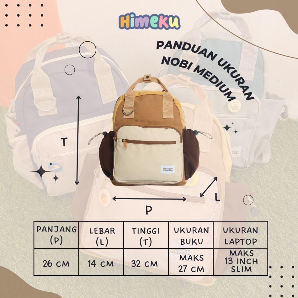 Himeku NOBI MEDIUM Backpack - Tas Sekolah Kuliah Kerja Medium - Ransel Pria Wanita Kanvas