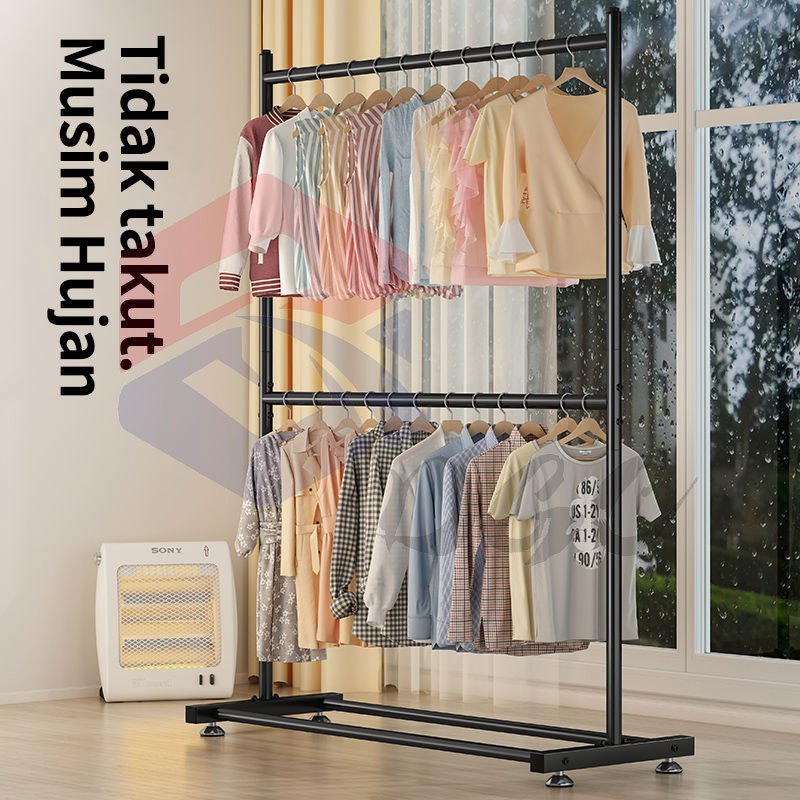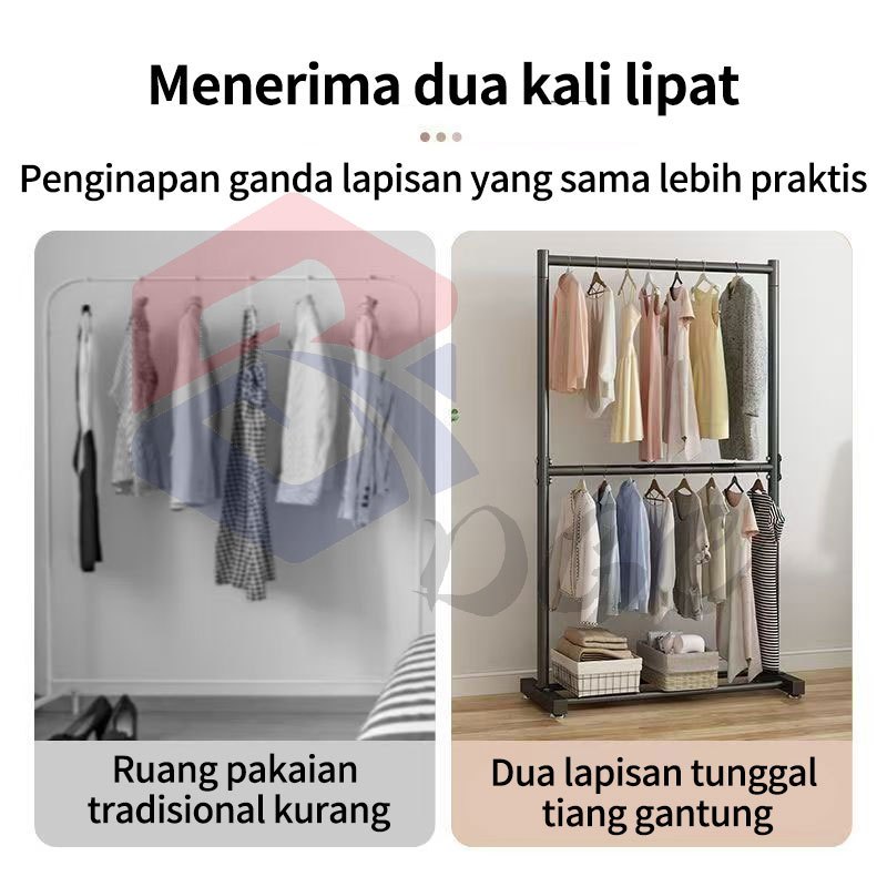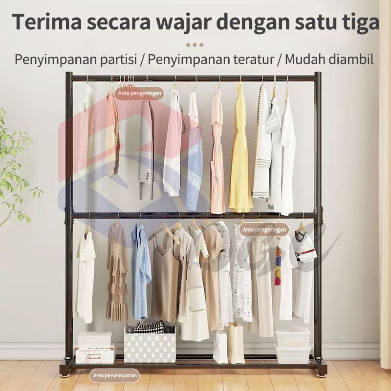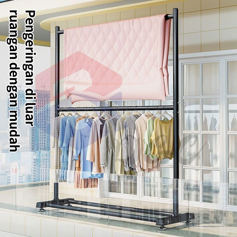 DGC 150X200CM Rak Gantungan Baju 2 Susun Gantungan Baju Besi Gantungan Baju Berdiri Rak Baju Gantung