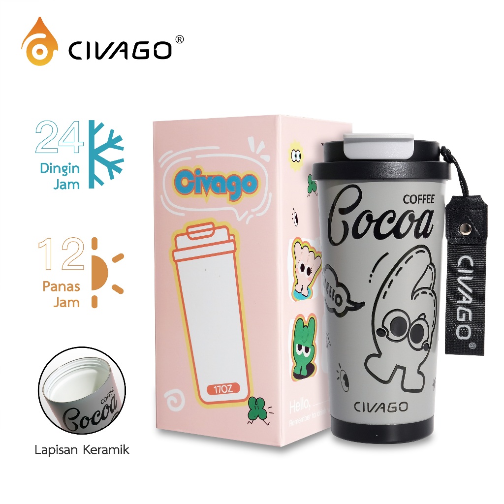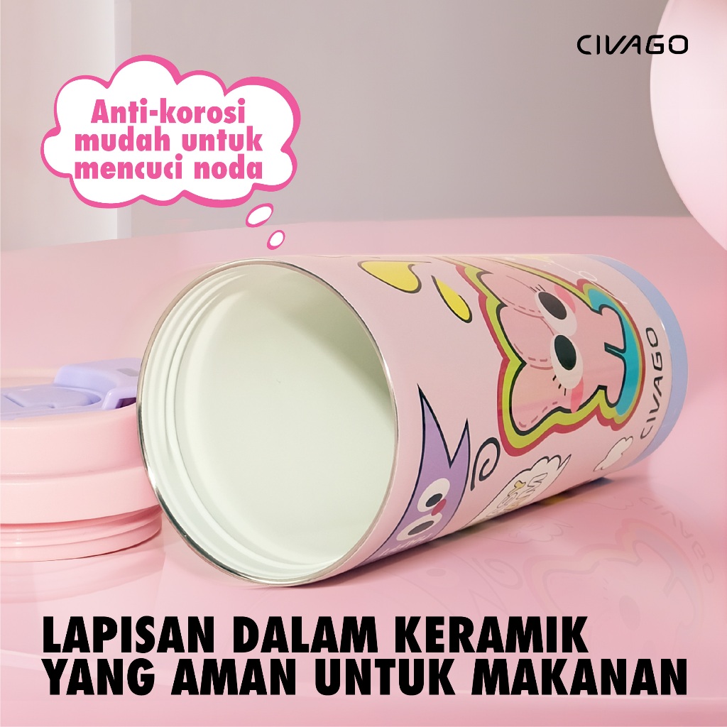 CIVAGO(17oz/502ml)Tumbler Isolasi Vakum dengan Sedotan Gelas Kopi Keramik Kapasitas Besar Seri Kartun