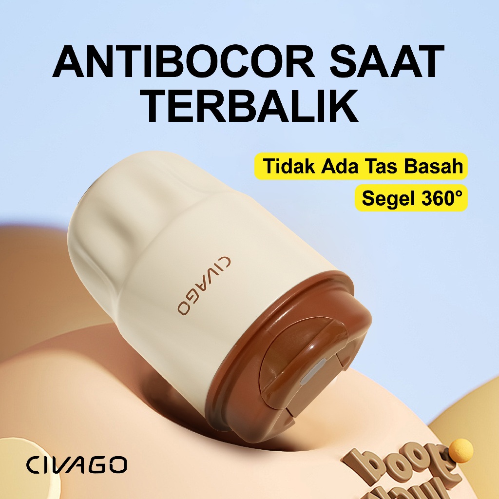 CIVAGO (10oz/295ml)Mug Kopi Stainless Steel dengan Lapisan Keramik & Tutup - Termos Vakum Praktis untuk Travel
