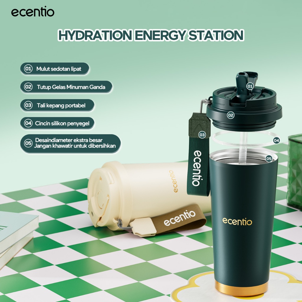 [Tumblr Aesthetic Series] ecentio Sederhana Fashion Tumbler Premium Quality 530ml Portable Tumbler Sedotan Dengan Tutup Vacuum Insulated