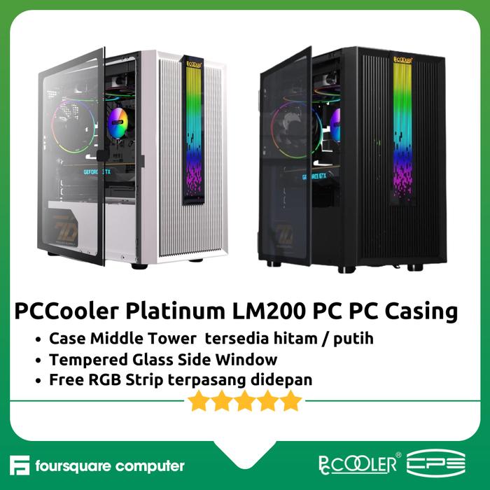 Pccooler Platinum Lm200 Black White | Casing Cpu Komputer Micro Atx Tempered Glass Hitam Putih - Hitam