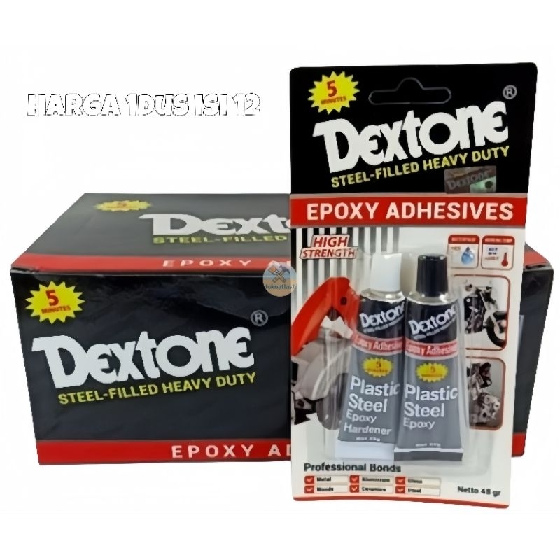 lem dextone 5 menit, lem besi epoxy 5 menit 48 gr (harga 1dos isi 12pcs) lem dextone, lem besi dextone