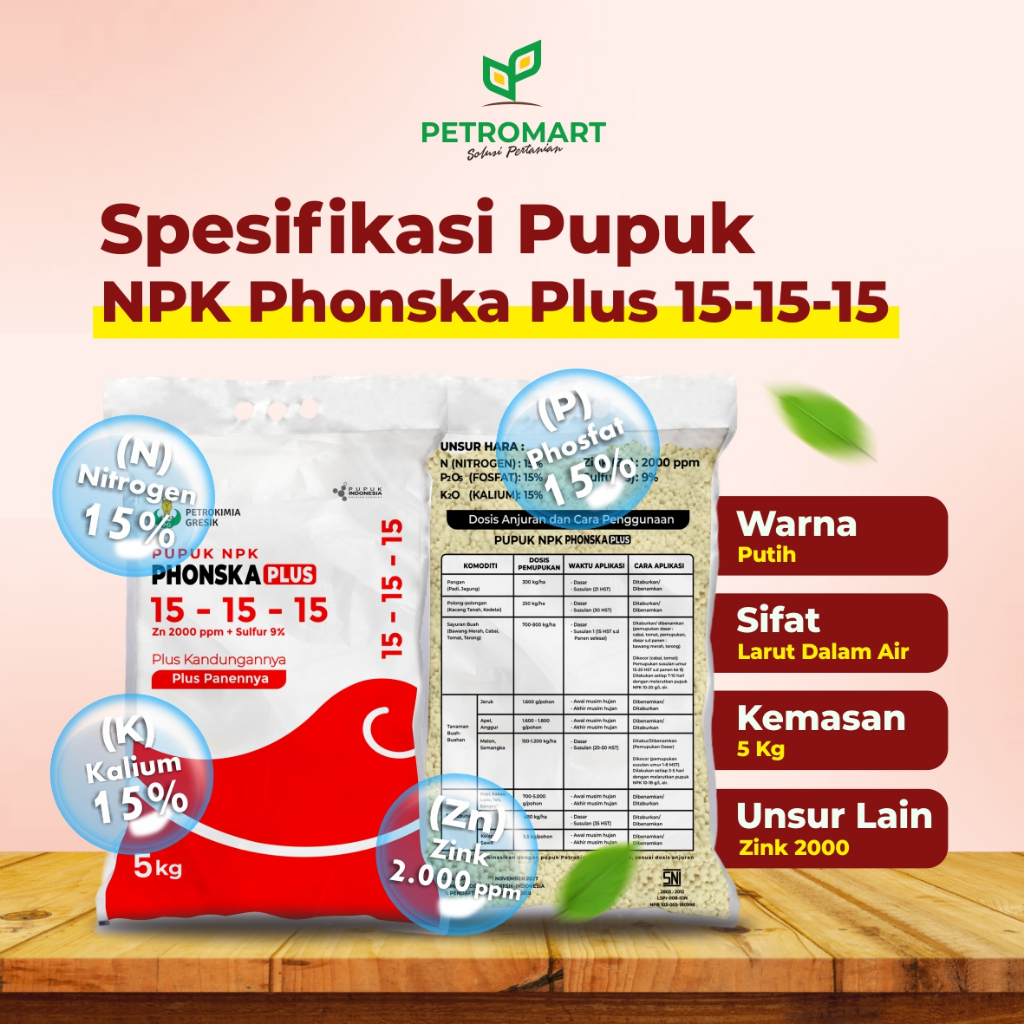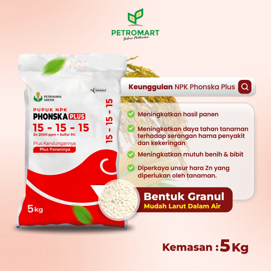 Petrokimia Gresik | Pupuk NPK Phonska Plus 15-15-15 | Meningkatkan Mutu Benih & Hasil Panen | 5 Kg