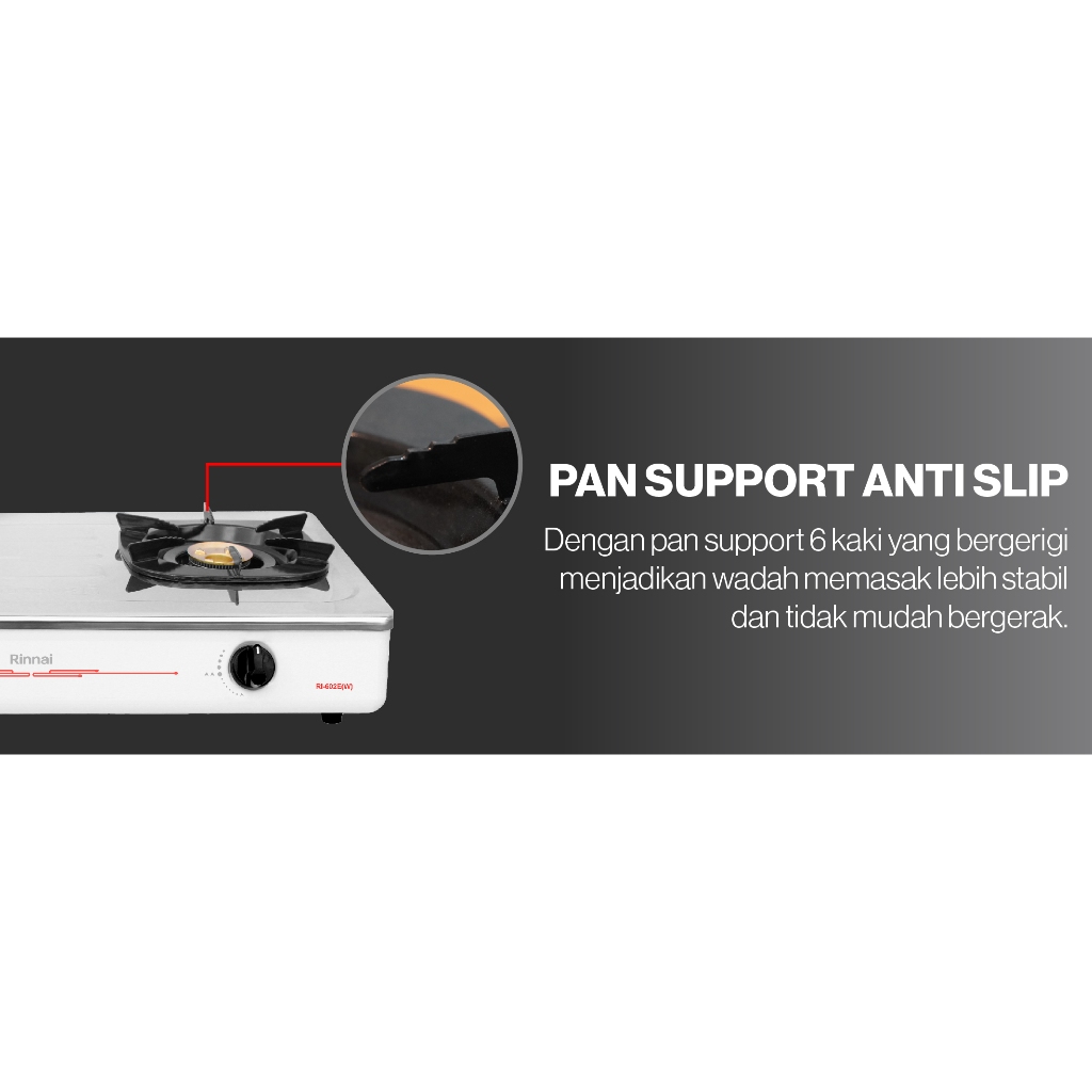 RINNAI Kompor Gas 2 Tungku Rinnai RI-602E (W) Putih Stainless Steel Top Plate Buka Tutup + Selang Regulator SNI / RI 602E W / RI602EW