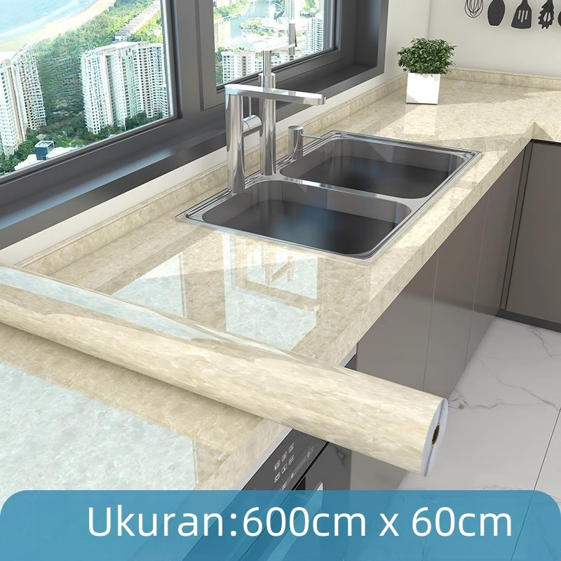 Dinding dapur stiker bahan alumunium foil 6 meter X 60 cm motif marmer warna putih garis abu2