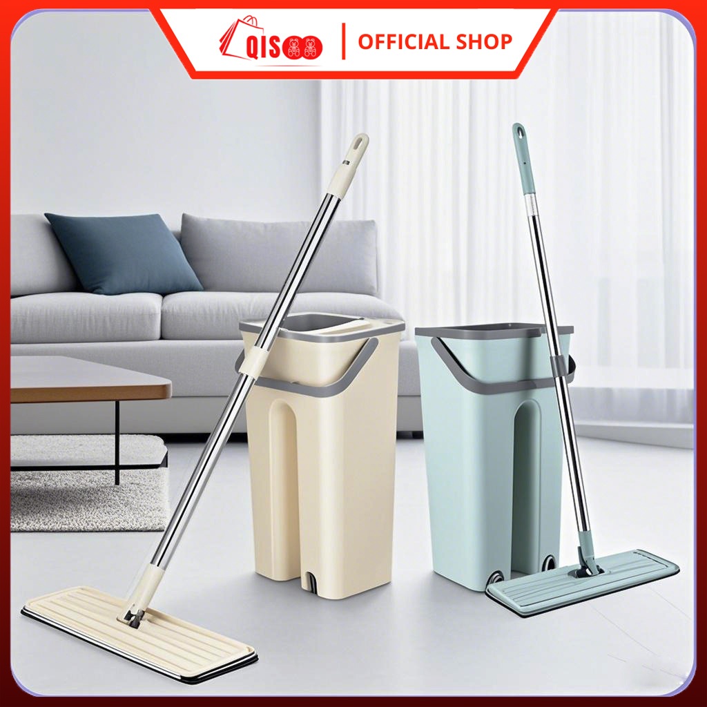 Qisoo Alat Pel Lantai Mop Ember Sekat Pel Lantai Dual Ember Sekat Dual Bucket Mop Pel Dengan Pemisah