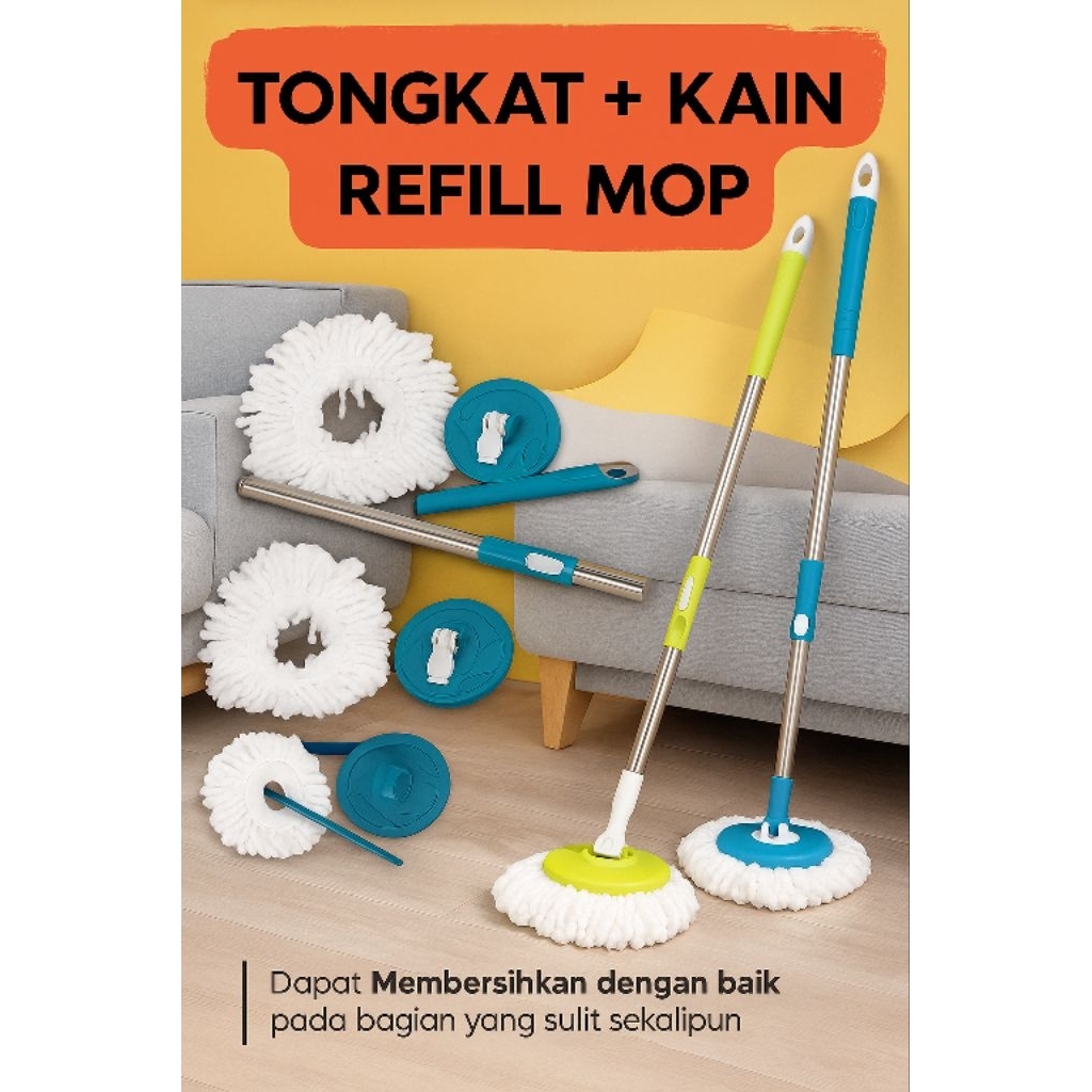 (QM) Refill Mop Set Tongkat + Kain Pel Lantai Putar 360° – Alat Pel Praktis Bersih Maksimal