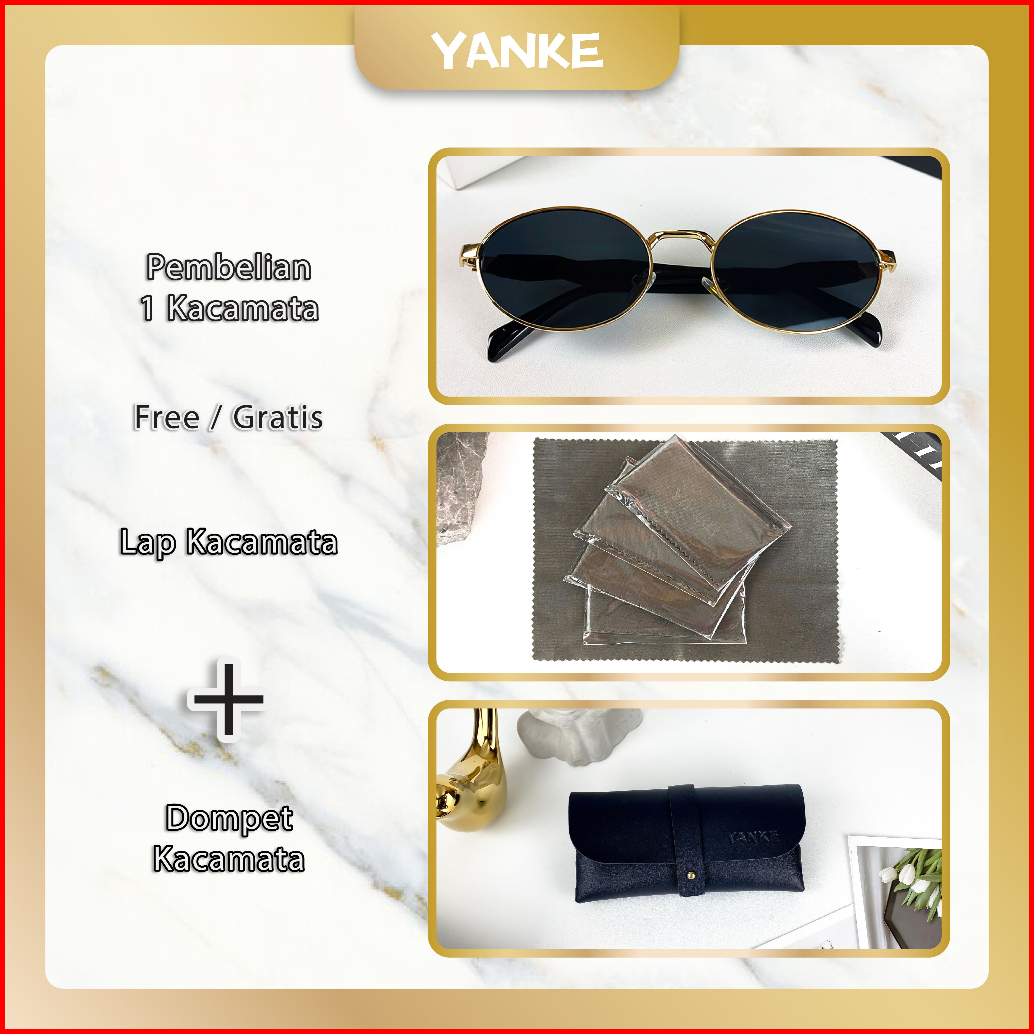 Paket Kotak Lap Kacamata Hitam Korea Mata Kucing Bingkai Logam Untuk Pria Dan Wanita 1225 Lensa Uv Protection