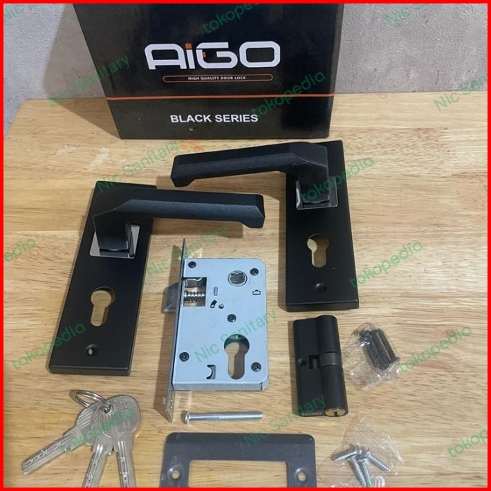Kunci Pintu Kecil Set Komplit Aigo Black As-17 Handle Ukuran Kecil 16m