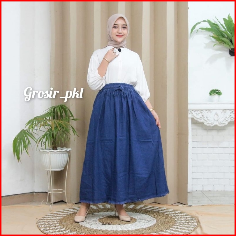 Rok Jumbo Polos Rawis Tali Aktif Rok Jumbo Jeans Wanita
