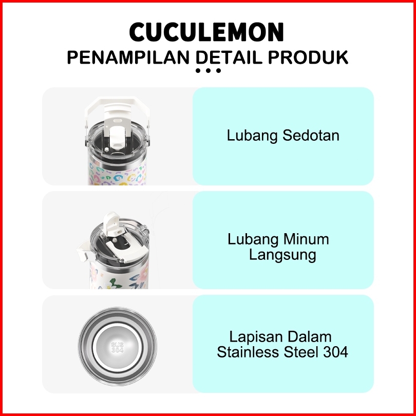 Cuculemon Tumbler Stainless Steel 890ml Termos Air Pansa Portable Botol Desainkartun Botol Minum