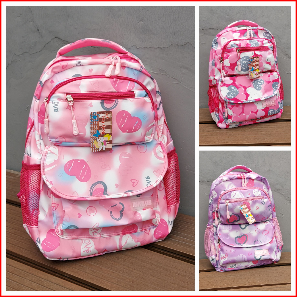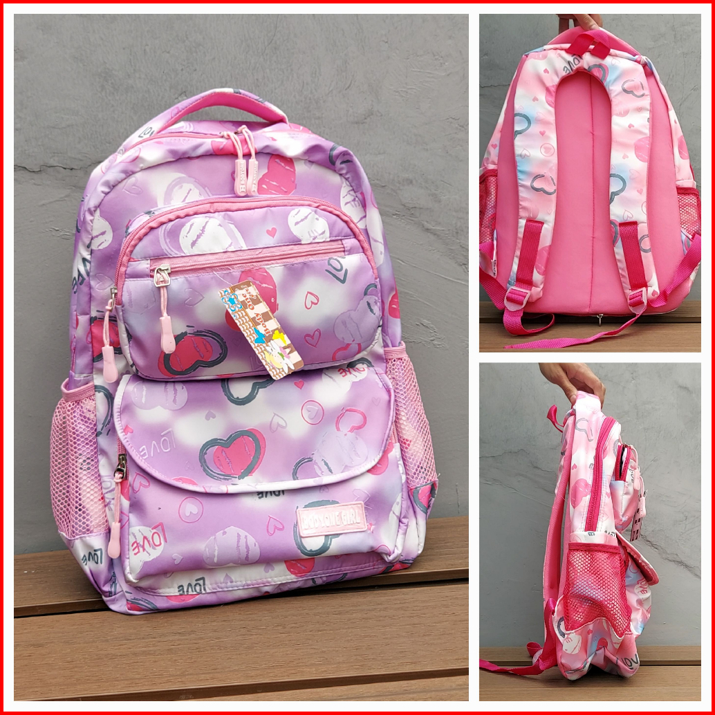 Alinesia - Realpict Tas Ransel Sekolah Anak Perempuan Terdapat Slot Laptop Warna Pink Fanta Pink Baby Ungu Bonus Rain Co