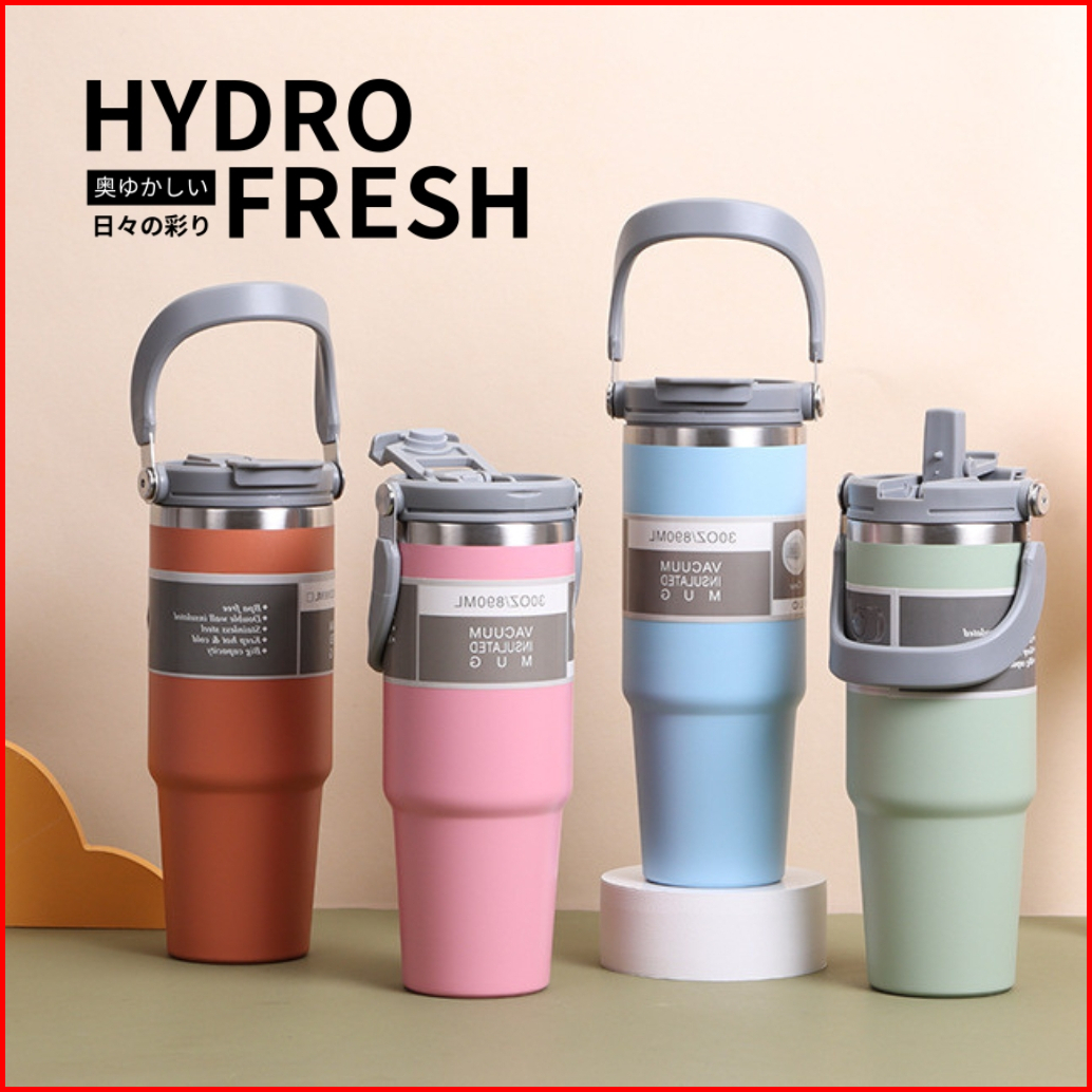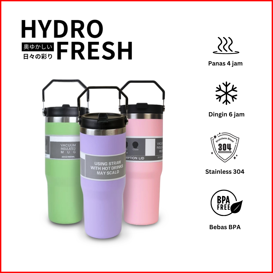Hydrofresh Tumbler Premium 900ml Botol Termos Sedotan Handle Portable Premium Tahan Panas Dingin