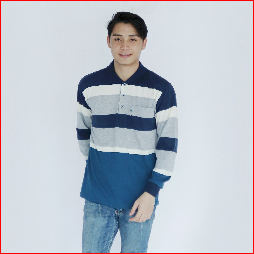 Liso Wear - Kaos Kerah Pria Stripe Engineering Kaos Kerah Saku Salur Lengan Panjang Kd 7881