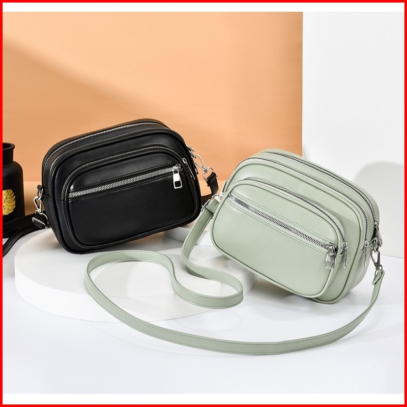 Alinesia - Kayla Sling Bag Tas Selempang Wanita 4 Ruang Bahan Kulit Pu Warna Hitam Putih Sage Cokelat Tan Model Kasual T