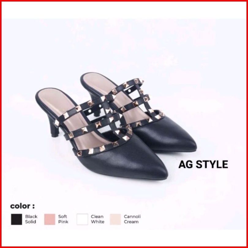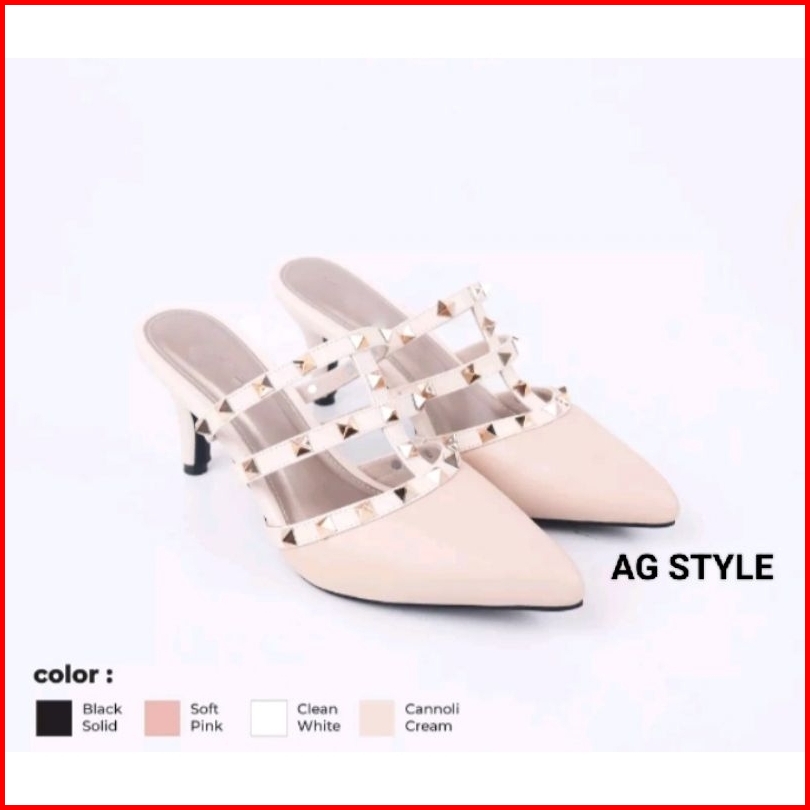 Sandal Heels Hak Lancip Kerucut Selop Bapau Motif Piramid Premium Terlaris Murah Sepatu Wanita Kondangan Kerja Terlaris