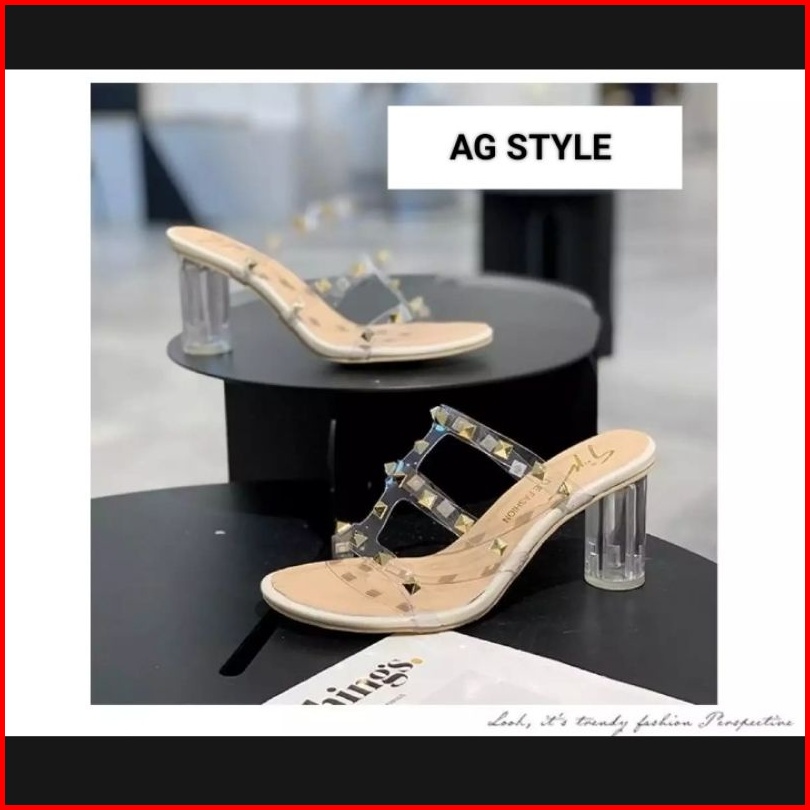 Sandal Heels Hak Tahu Kaca 7 Cm Heels Kaca Mika Piramid Sandal Wanita Sandal Heels Heels Cantik Wedges High Heels Elegan
