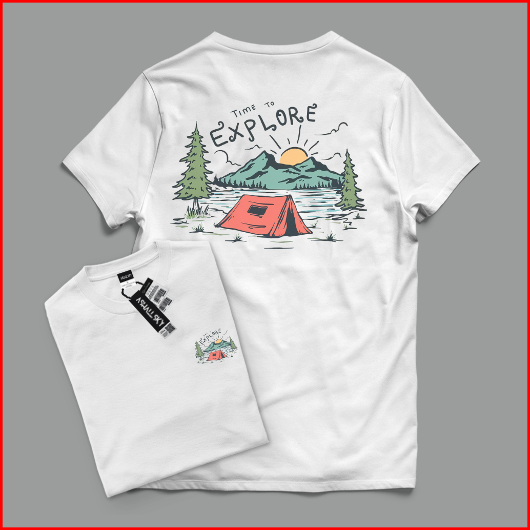 Ashall.sky Kaos Surfing Explore Cotton Combed 30s Warna Putih Distro Lengan Pendek Katun Combet 30s