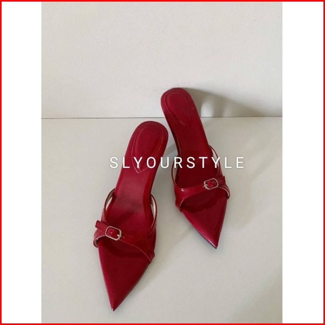 Sandal Wanita High Heels Kerucut Gesper Depan Runcing Terbaru Sandal Heels Heels Cantik Wedges High Heels Elegant Heels