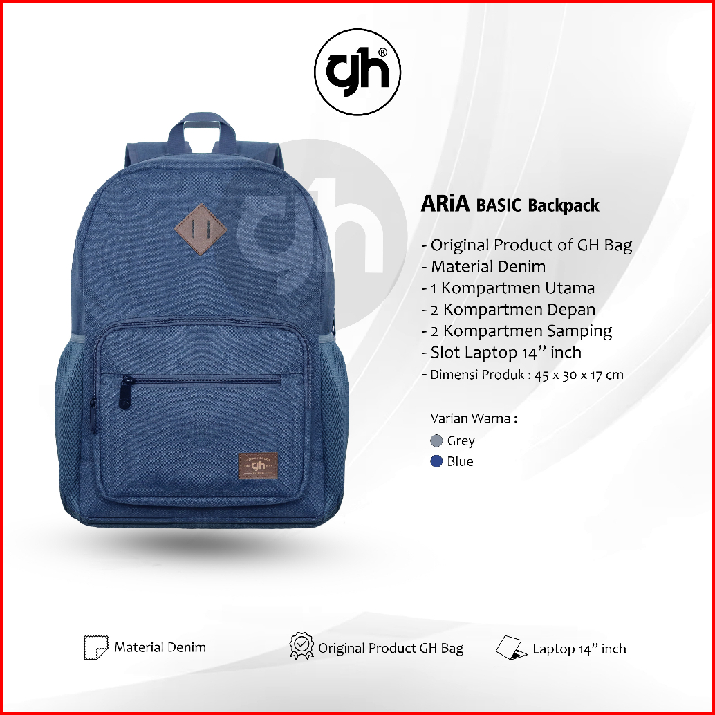 Gh-bag Tas Ransel Sekolah Tas Laptop Aria Basic Backpack