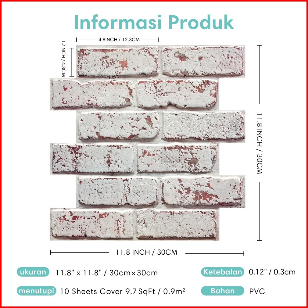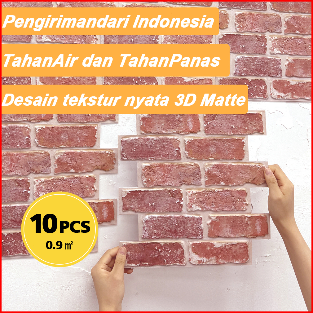 Commomy 10pcs 3d Brick Wallpaper Dinding Dapur Perekat Diri Kamar Mandi Anti Air Sticker Matte
