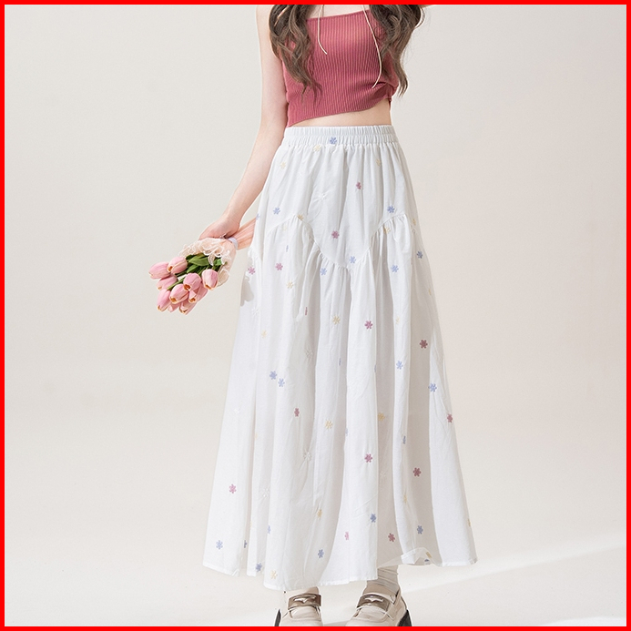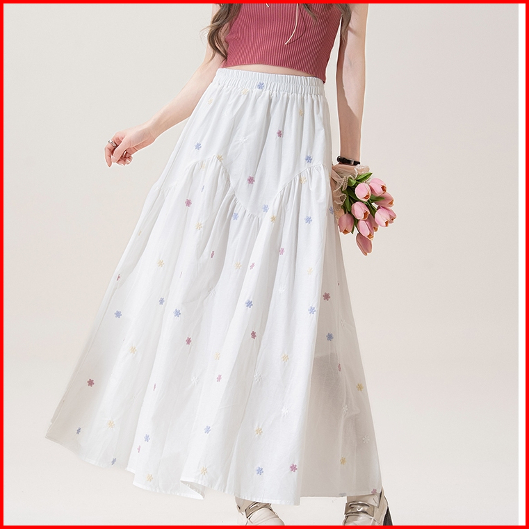 Rok Wanita Long Skirt Rok Bordirn Korean Style Katunimpor Bermutu Tinggi- Rok Cewe Rok Maxi Rok Modern Rok Embroidery Ro