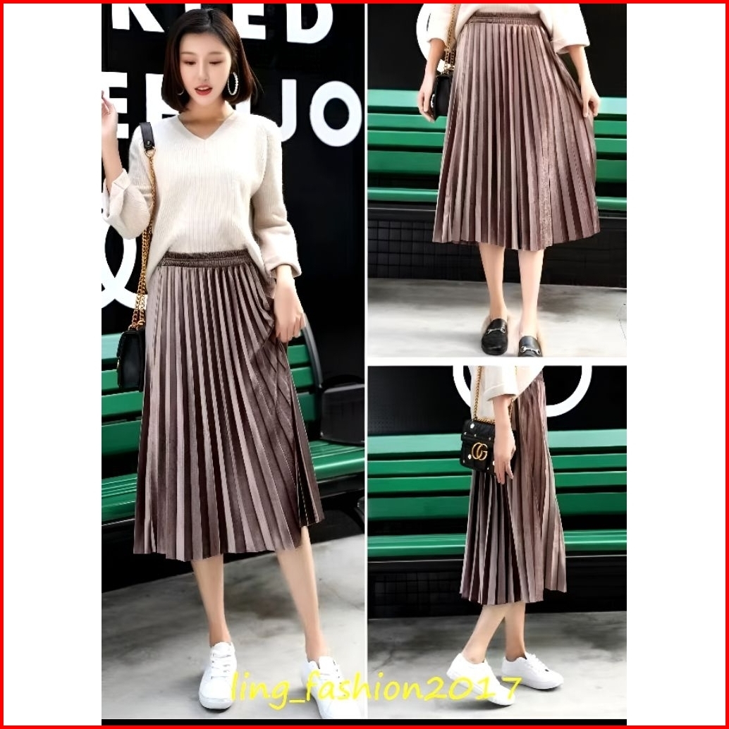 Rok Bludru Pendek 7 8 - Rok Plisket Bludru Velvet - Rok Bludru Mayung