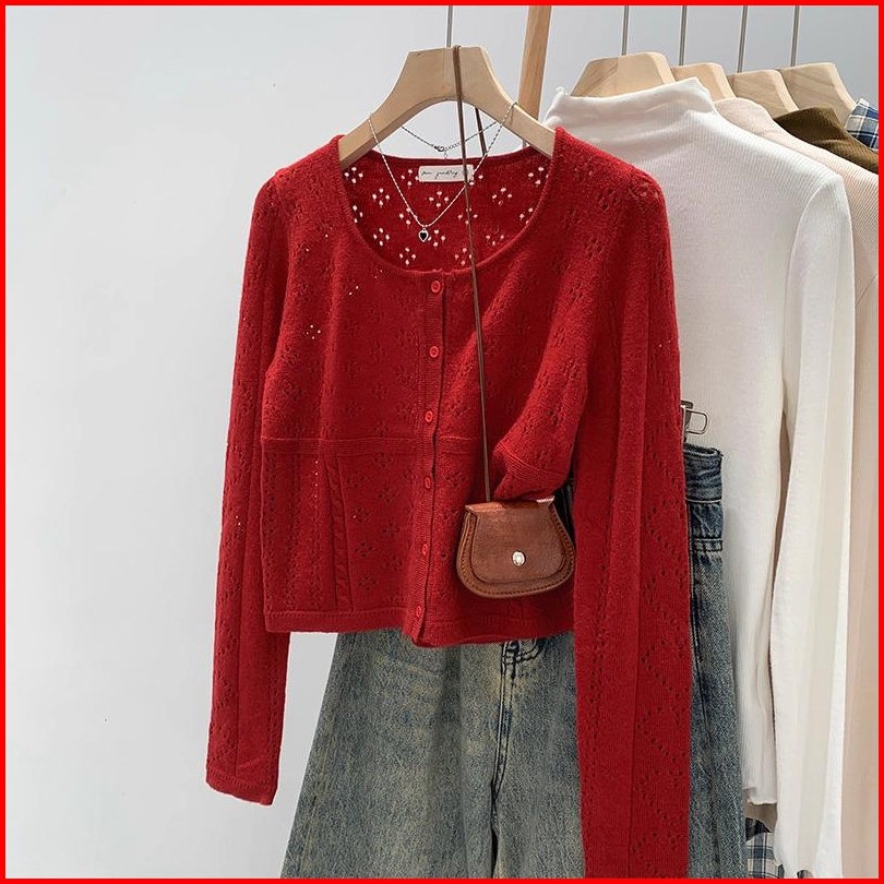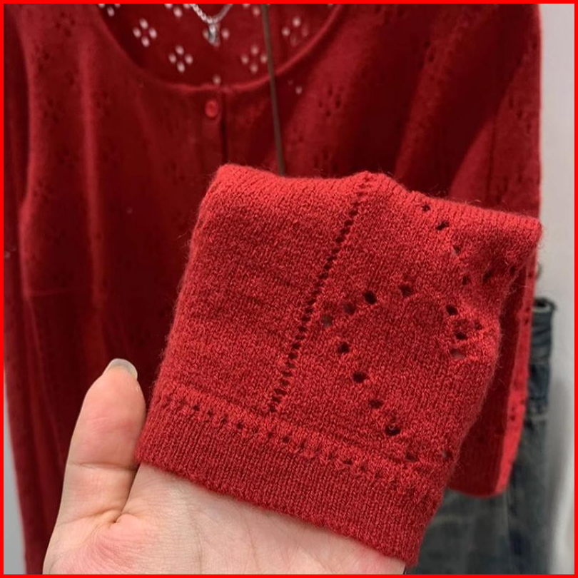 Atasan Kardigan Lengan Panjang Rajutan Merah
