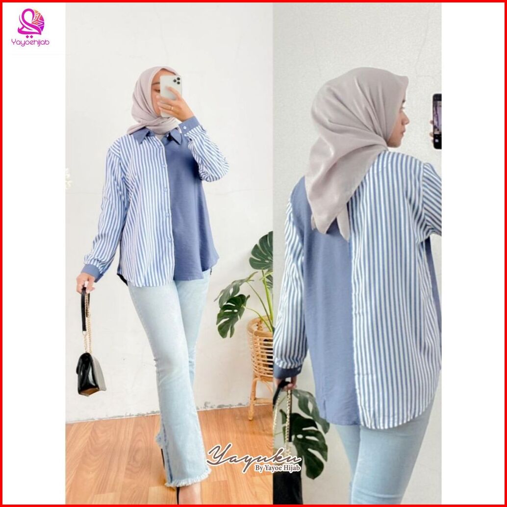 Nadine Top Atasan Kemeja Wanita Oversize Katun Rayon Viscose Mix Linen Cantik Kekinian Yayuku