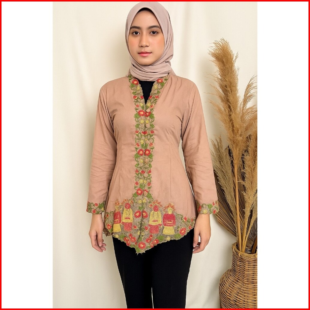 Kebaya Encim Bordir Bunga Senada Modern Jumbo Big Size Ld120 Lengan Panjang Premium