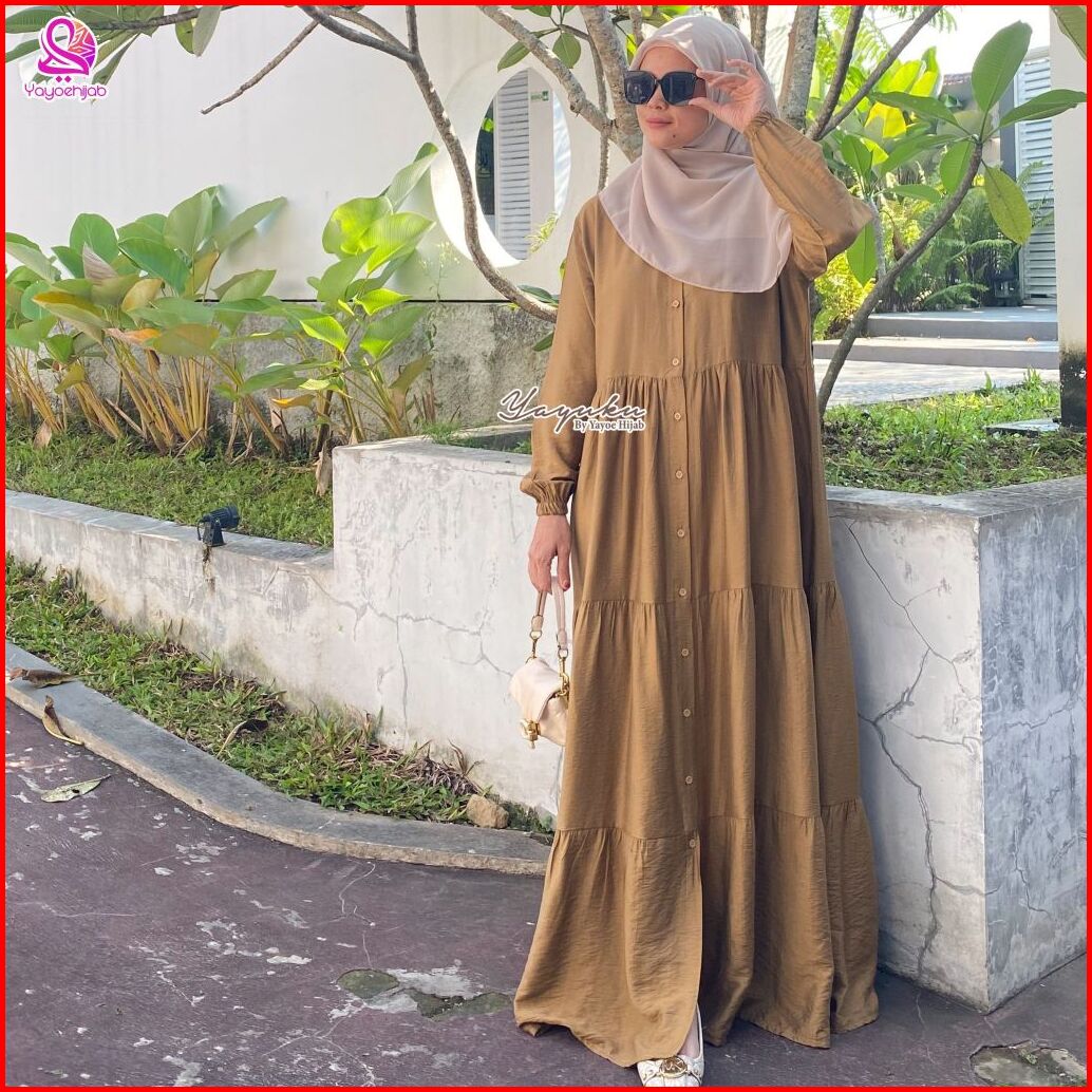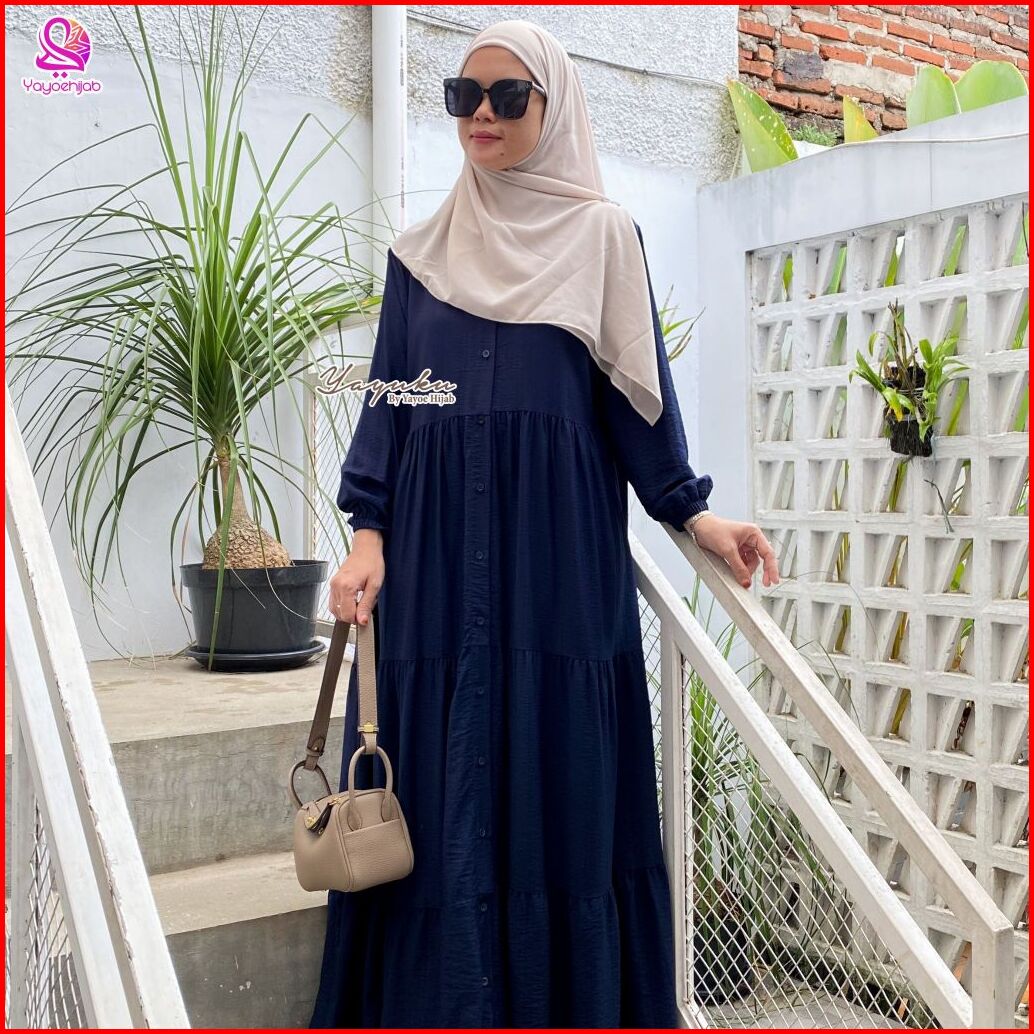 Ayesha Dress Lengan Panjang Polos Polo Linen Model Susun Terapan Full Kancing