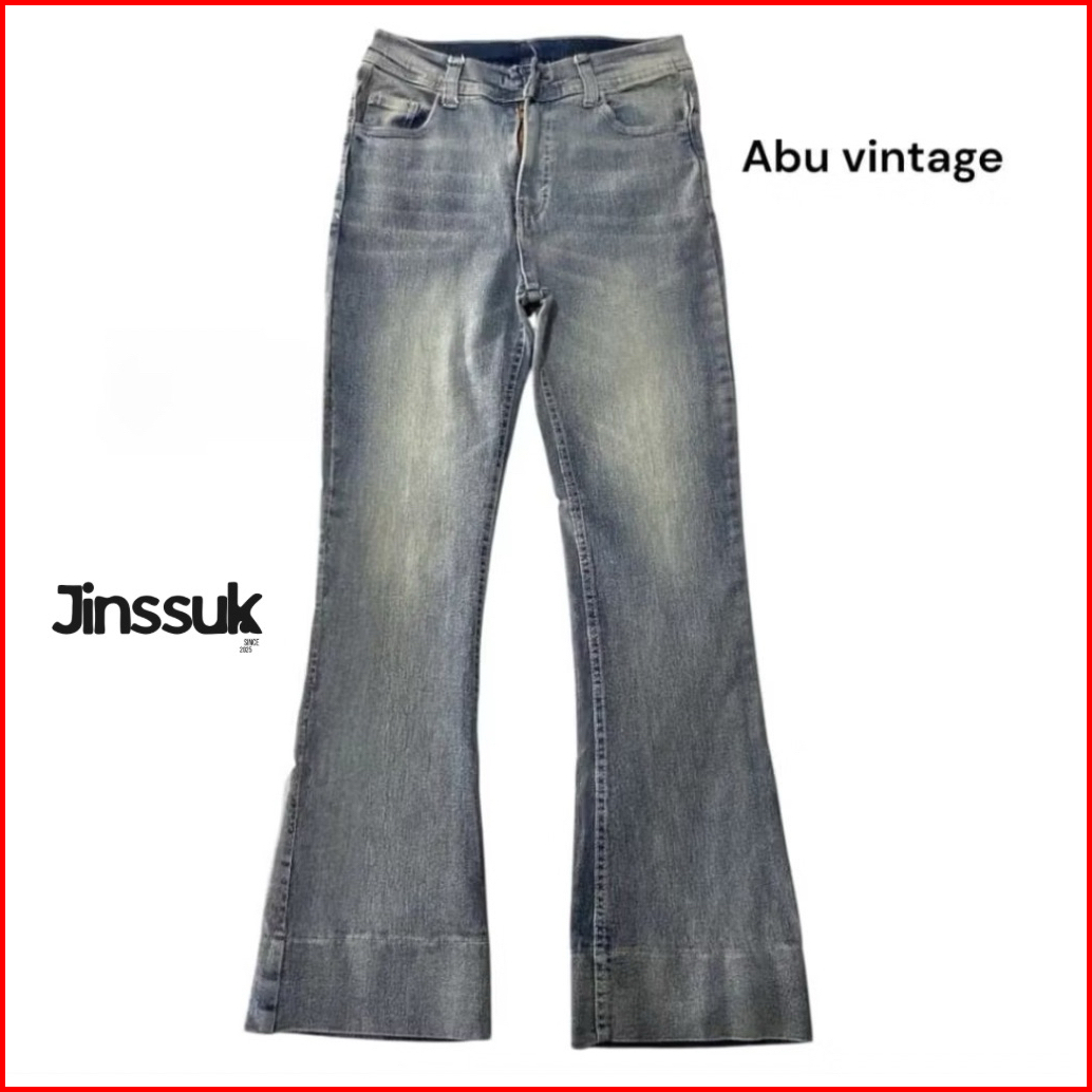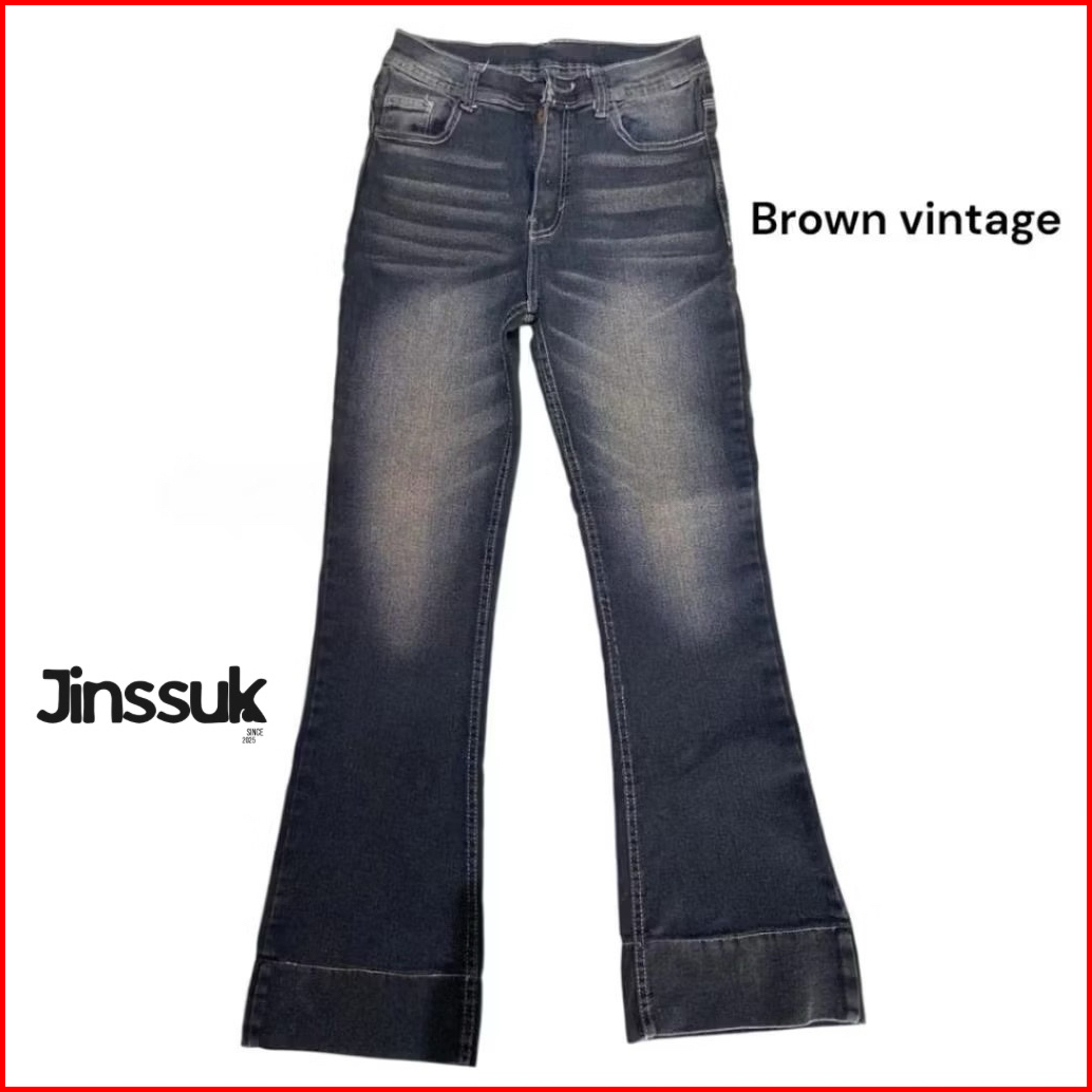 Highwaist Cutbray Jeans Celana Flare Panjang Stretch Wanita Retro Vintage Lipat Bawah