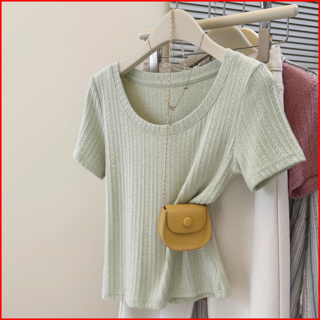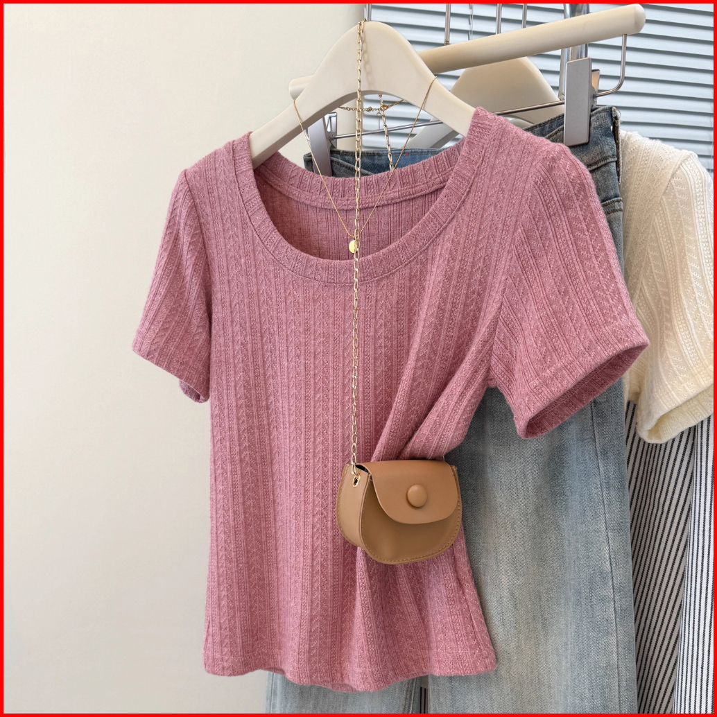 Kaos Slim Fit Stretch Bergaris Merah Muda Premium