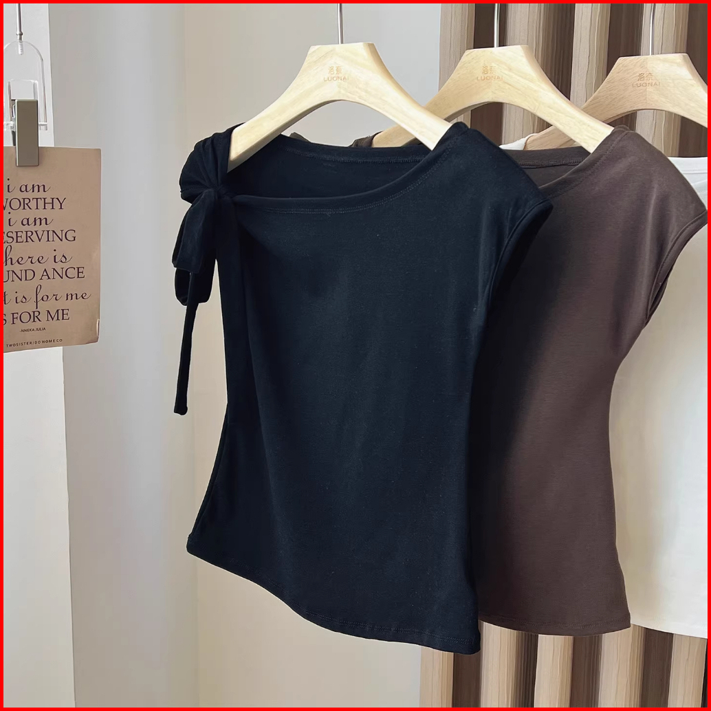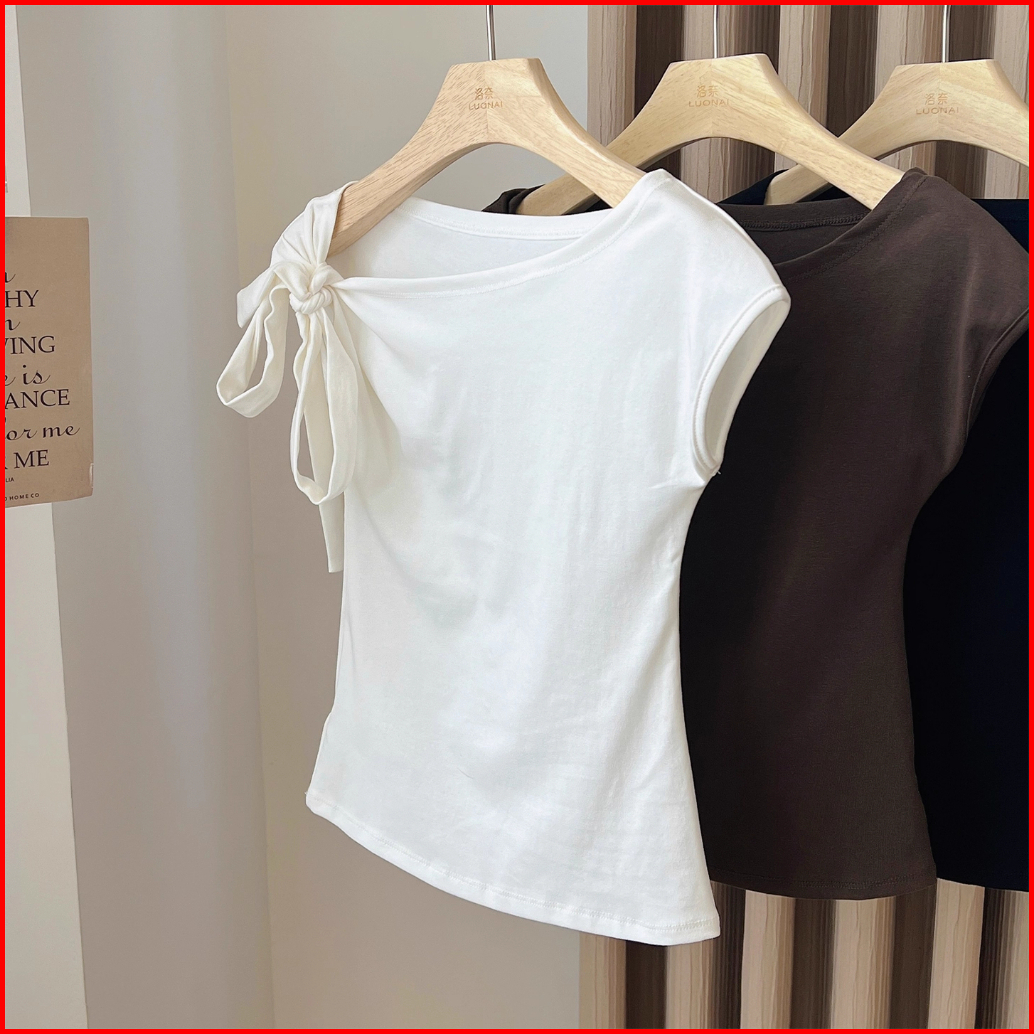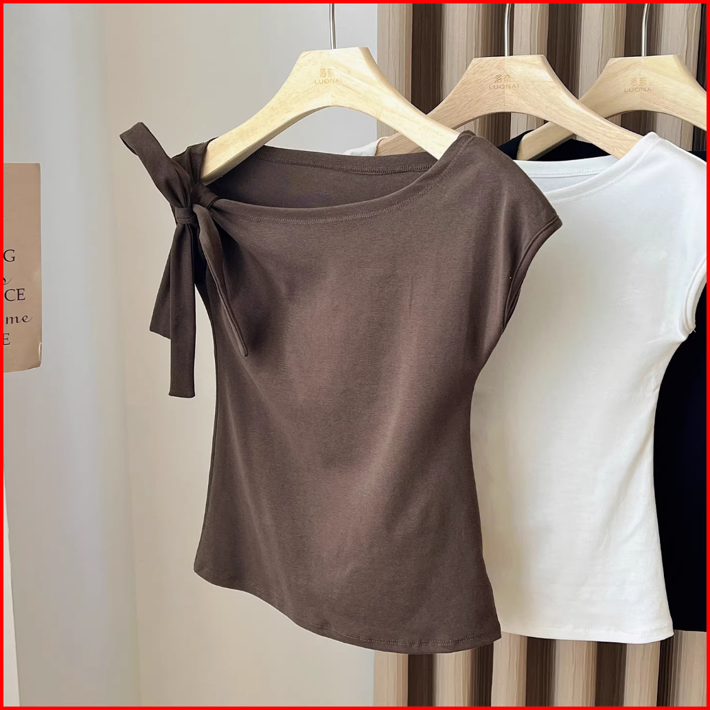 Kaos Oblong Stretch Tali Serut Satu Bahu Warna Coklat